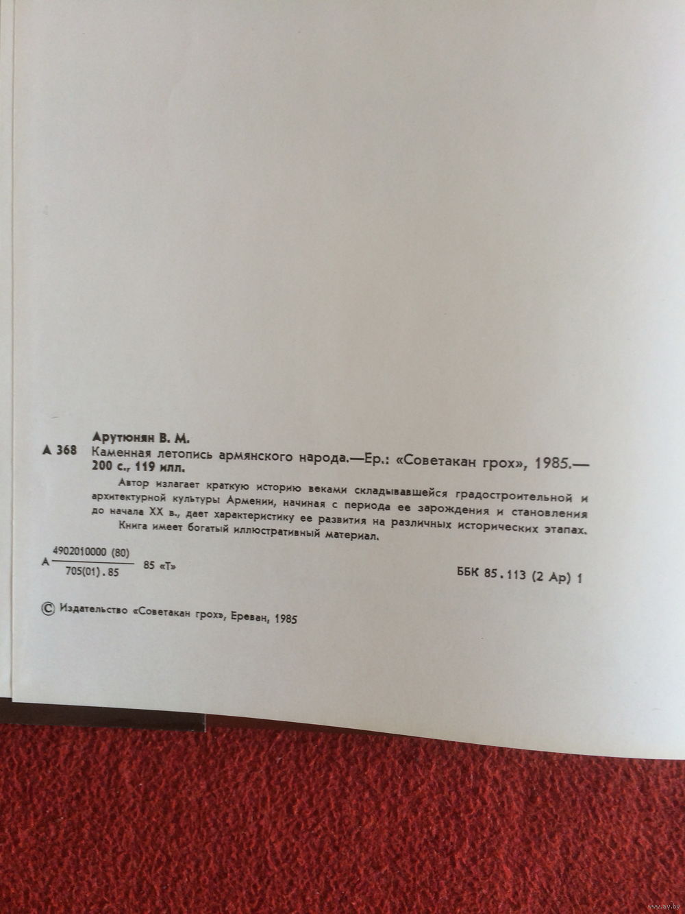 Автор излагает краткую историю веками складывавшейся градостроительной и архитектурной культуры Армении, начиная с периода ее зарождения и становления до начала XX в., дает характеристику ее развития на различных исторических этапах. Книга имеет богатый иллюстративный материал.