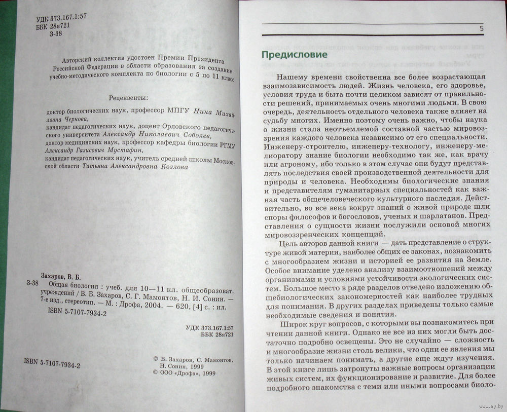 | Автор | В.Б.Захаров, С.Г.Мамонтов, Н.И.Сонин |