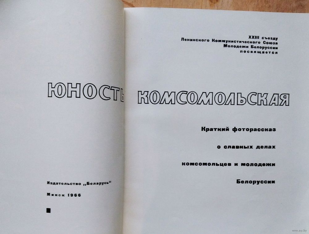 В. Буянов, П. Чигринов (авторы-составители). Юность комсомольская: краткий фоторассказ о славных делах комсомольцев и молодежи Белоруссии. Автограф одного из авторов. Минск : Беларусь. 1966 г. 79 с. Мягкая обложка. Энц. формат.