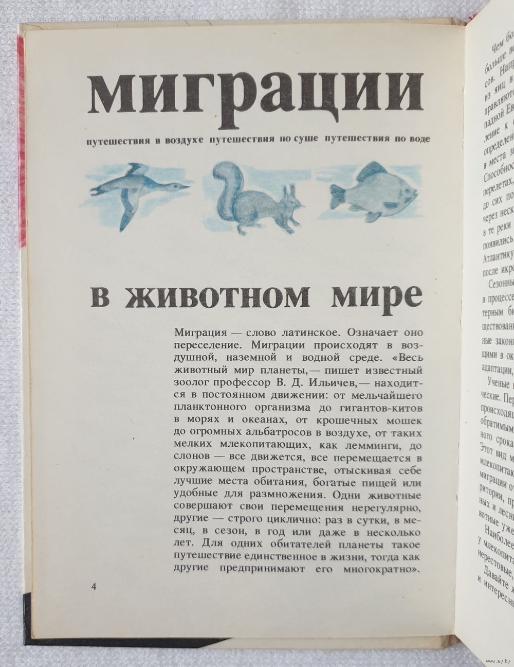 Почему мигрируют птицы, звери, лягушки, рыбы и даже насекомые? Как ориентируются птицы при перелетах? Что такое биологические часы живых организмов? Как общаются животные? Об этом рассказывает автор в своей книге. Читатель совершит также путешествие по страницам Красной книги, узнает о жизни и повадках редких и находящихся на грани исчезновения животных.