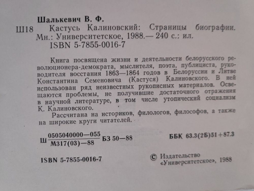 Книга посвящена жизни и деятельности белорусского ре- волюционера-демократа, мыслителя, поэта, публициста, руководителя восстания 1863-1864 годов в Белоруссии и Литве Қонстантина Семеновича (Қастуся) Қалиновского. В ней использован ряд неизвестных рукописных материалов. Освещаются проблемы, не получившие достаточного отражения в научной литературе, в том числе утопический социализм Қ. Калиновского.Рассчитана на историков, филологов, философов, а также на широкие круги читателей.