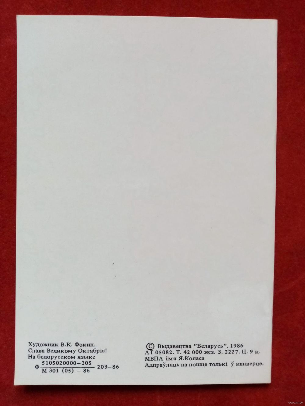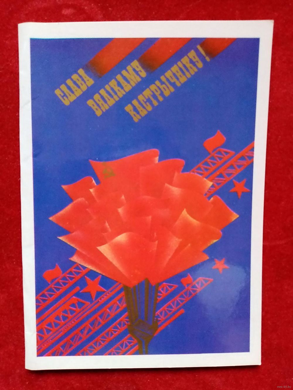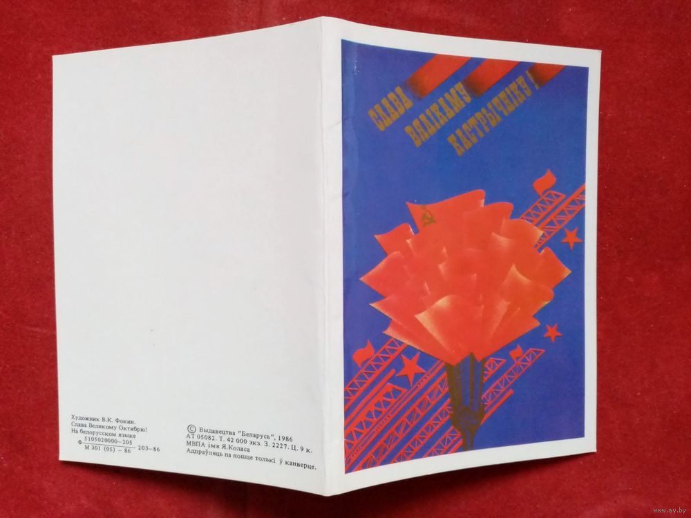 В. Фокин Слава Вялікаму Кастрычніку! 1986 Слава Великому Октябрю! Белорусская открытка Беларуская паштоўка двойная чистая