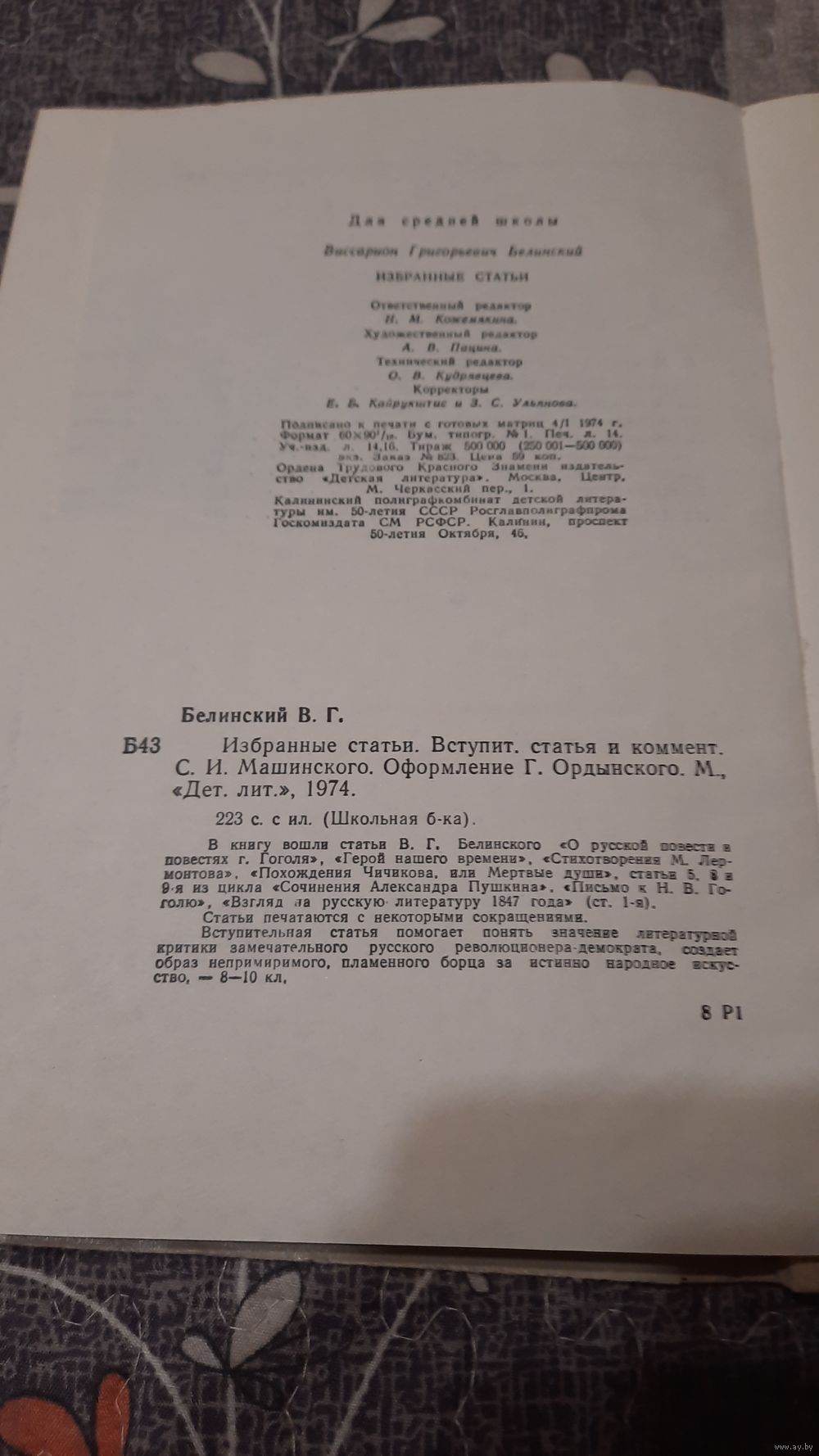 В.Г.Белинский Избранные статьи, Москва, 1974г.