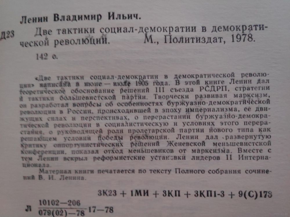 В. И. Ленин. Две тактики социал-демократии в демократической революции. Москва, Политиздат, 1978.142 страниц.