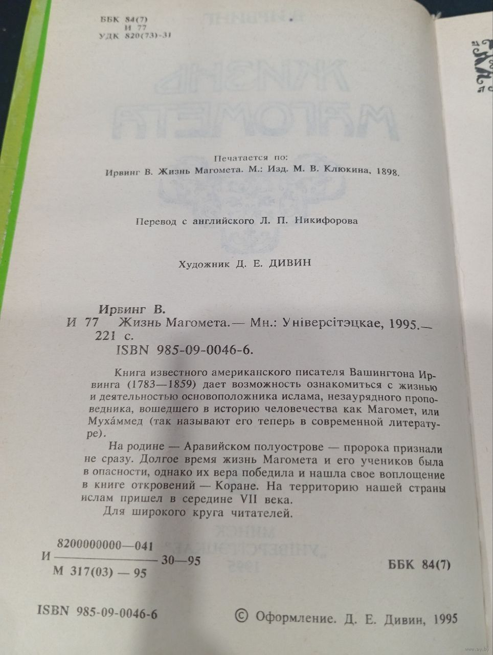 Классическая биография основателя ислама, написанная американским писателем Вашингтоном Ирвингом и изданная по‑русски в Минске издательством «Унiверсiтэцкае» в 1995 году.