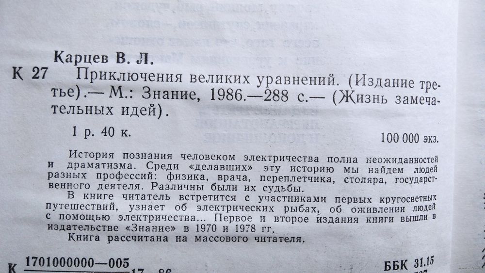 История познания человеком электричества полна неожиданностей и драматизма. Среди `делавших` эту историю мы найдем людей разных профессий: физика, врача, переплетчика, столяра, государственного деятеля. Различны были их судьбы. В книге читатель встретится с участниками первых кругосветных путешествий, узнает об электрических рыбах, об оживлении людей с помощью электричества.