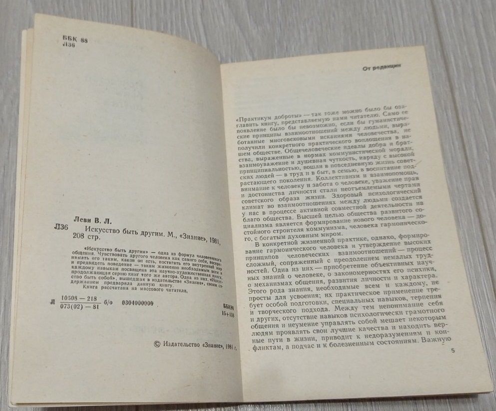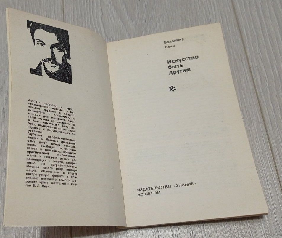 В.Л. Леви. Искусство быть другим, издательство "Знание", 208 стр. Передача в Витебске возле ратуши. Пересылка в другой город за счёт покупателя по тарифам Белпочты либо Европочты после 100% предоплаты.