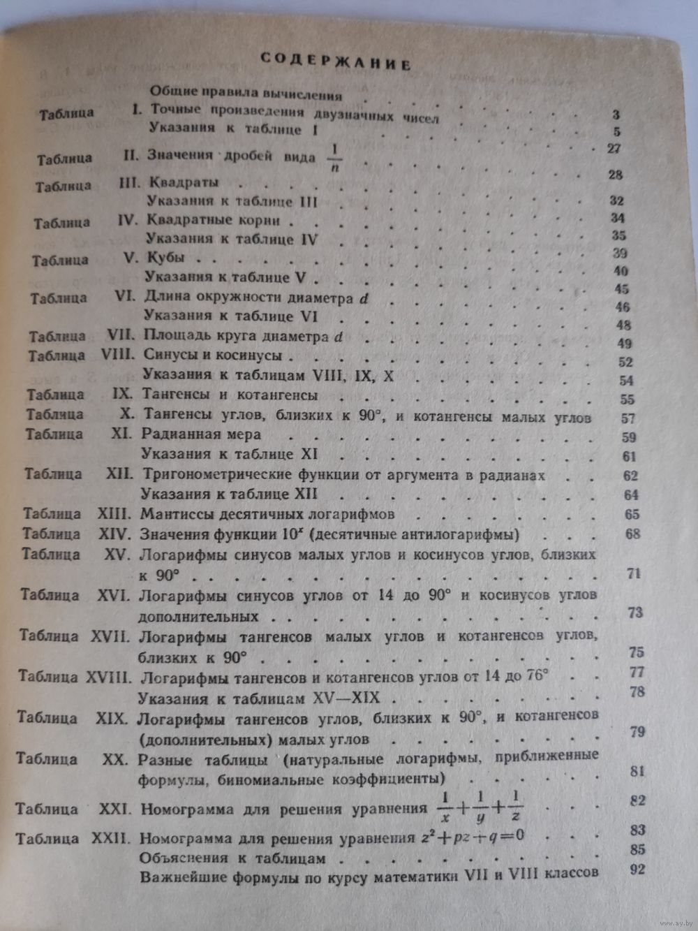 В брошюру вошли четырехзначные математические таблицы В. М. Брадиса, объяснения к ним, а также важнейшие математические формулы за 7-8 классы.