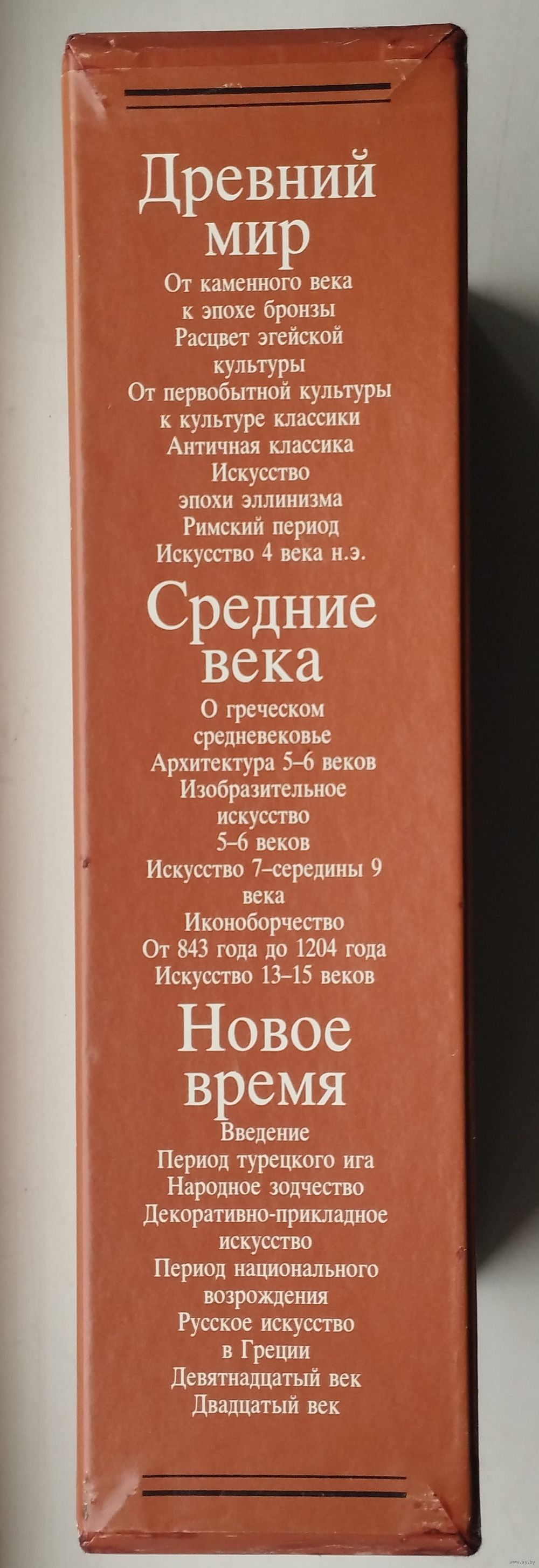 Цена за 2 тома. Подарочное издание в коробке. Мелованный альбом. Ляссе. Тираж 30000 экз. 536+488 стр. В книге видного советского ученого исследованы проблемы истории искусства Греции от античности до наших дней. В I томе публикуется текст, во 2-м - иллюстрирующие его изображения артефактов и таблицы. Первая часть – собственно история греческого искусства. Искусство Древней Греции — период в истории европейского искусства, охватывающий время примерно с 1050 года до н. э. до эпохи Римской империи. Характерно для Древней Греции, её колоний, части Скифии и эллинистического побережья Передней Азии. Новое искусство Греции - явление запоздалое в истории художественной культуры Европы. Его зарождение было задержано и осложнено многими причинами. Но ни одна из этих причин не может быть поставлена греческому искусству в упрек, как нечто, свидетельствующее о его несовершенстве или неполноценности. Напротив, первой из всех стран, находившихся под турецким игом, Греция вырвалась из-под гнета застойного восточного средневековья. Но сколько попреков пришлось выслушать грекам по поводу того, что они растеряли былое величие Эллады. О новом искусстве Греции стали судить как о явлении, оторванном и от древней и от средневековой греческой культуры, к тому же созданном чуть ли не каким-то вновь образовавшимся народом. Все эти сентенции прозвучали как раз тогда, когда на рубеже 18-19 веков народ Греции поднялся на борьбу против многовекового турецкого ига. Не без высокомерия и скепсиса Европа встретила новую культуру Греции, никак не соответствовавшую идеалам классической древности.
