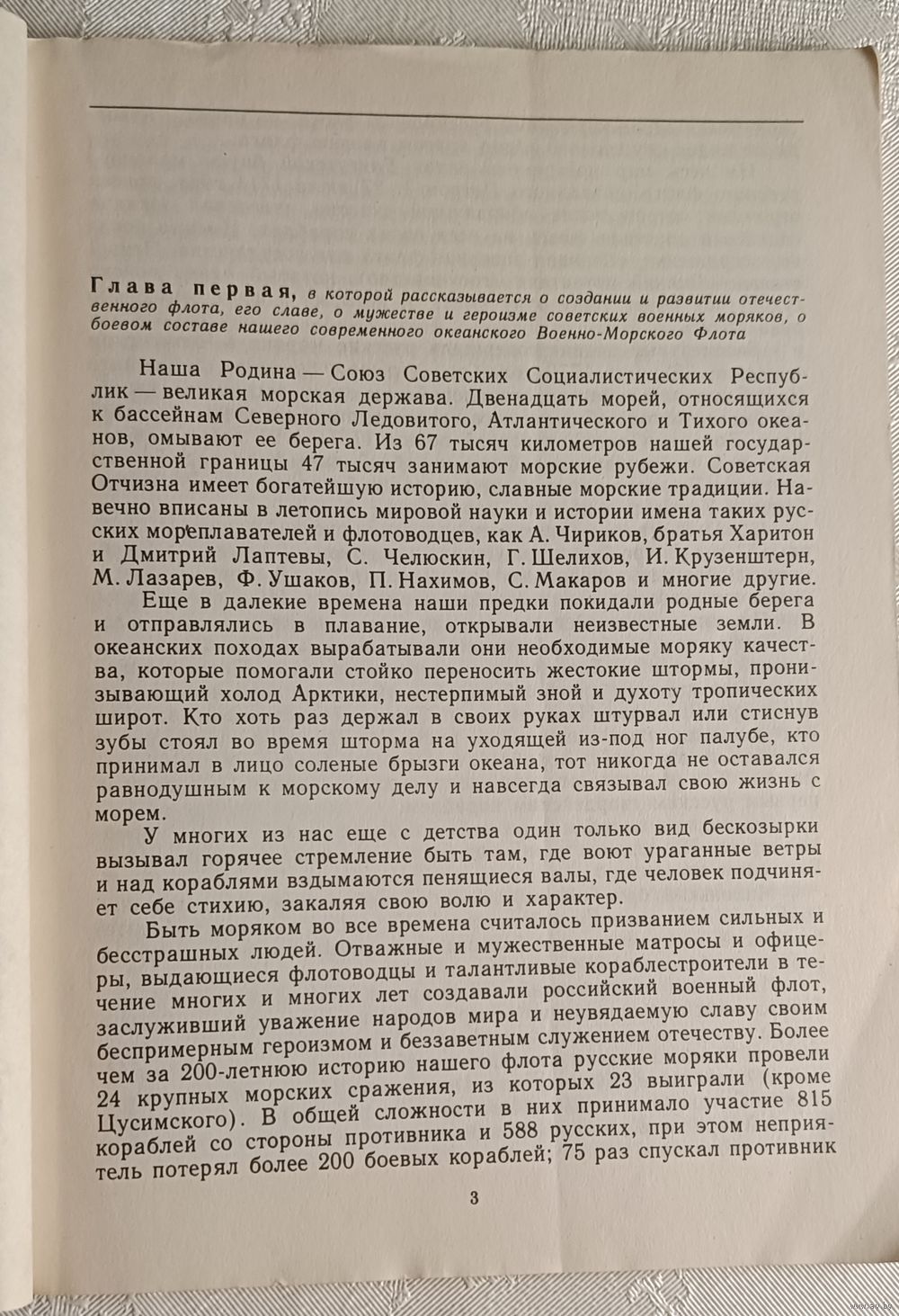 В книге популярно рассказывается о Советском Военно-Морском Флоте, его родах сил, их вооружении, назначении и устройстве кораблей, о жизни и учебе моряков.