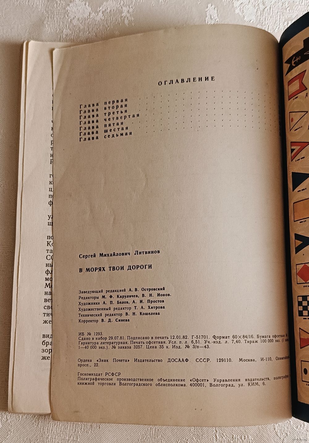 Литвинов С. М. В морях твои дороги. — М.: ДОСААФ, 1982.- 96 с., ил., мягкая обложка, обычный формат.