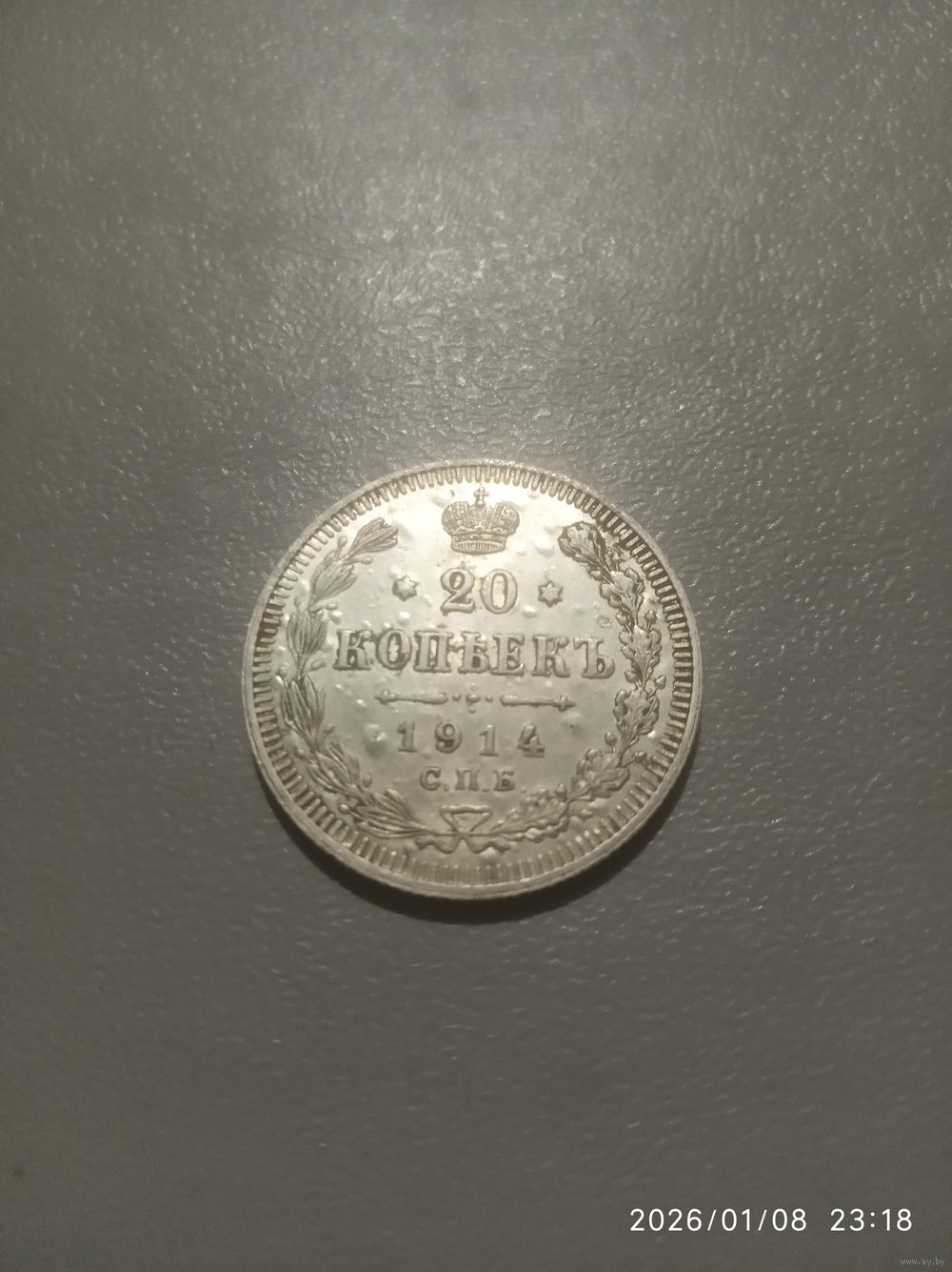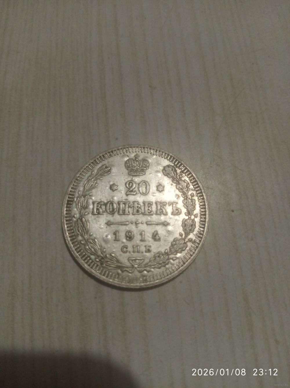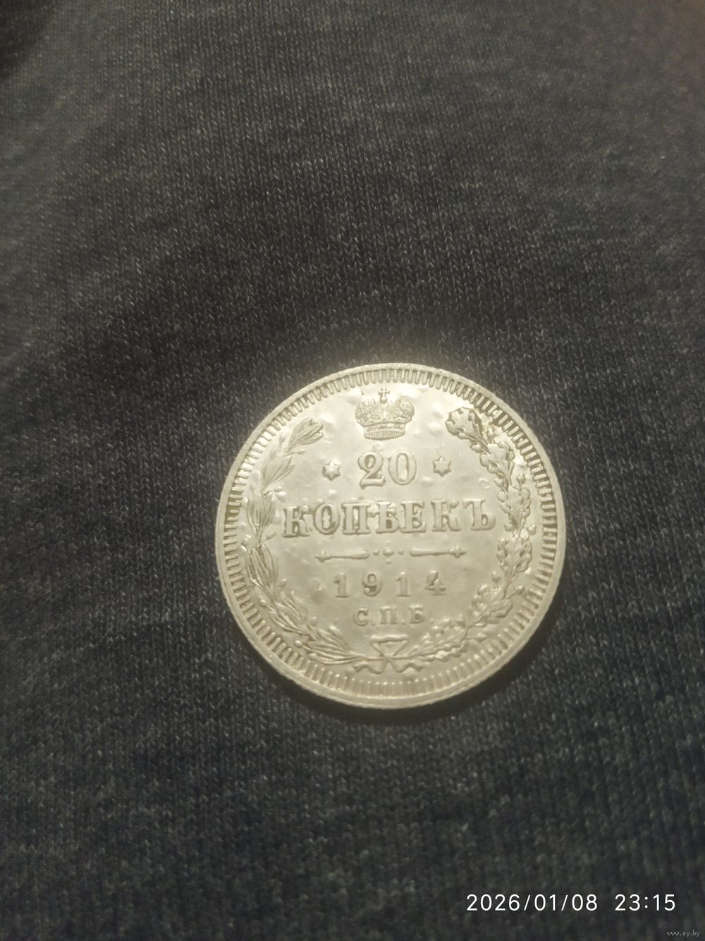 В отличном состоянии 20 копеек 1914 года. Без следов хождения,не чищена.
