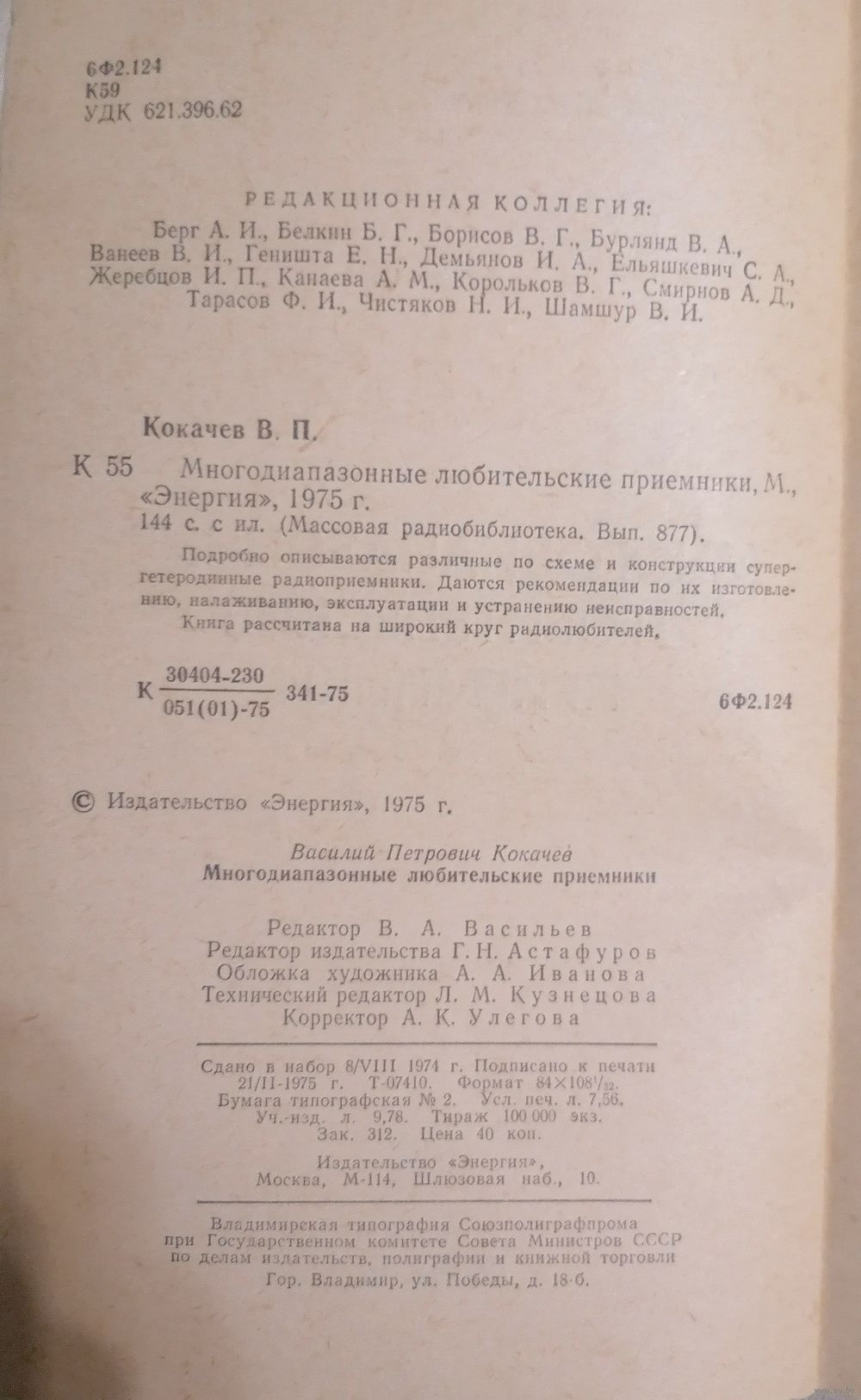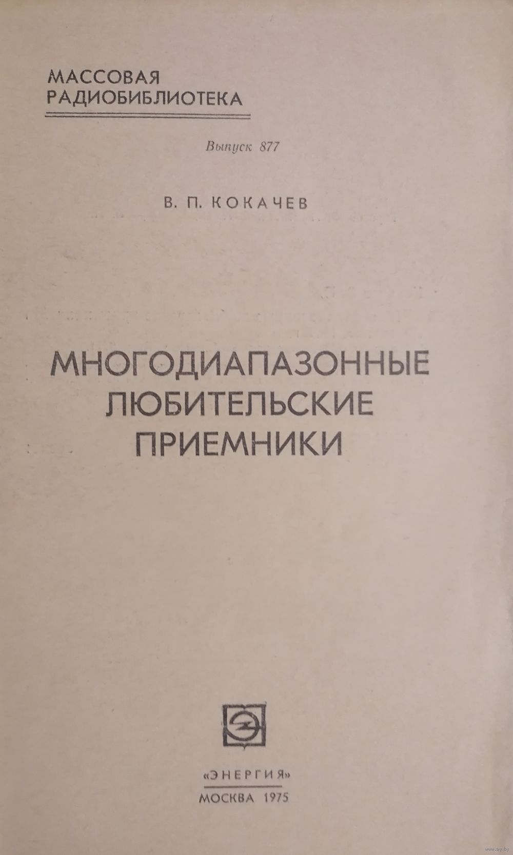 Кокачев В. П. Многодиапазонные любительские приемники, М., «Энергия», 1975 г. , 144 с. с ил. (Массовая радиобиблиотека. Вып. 877).