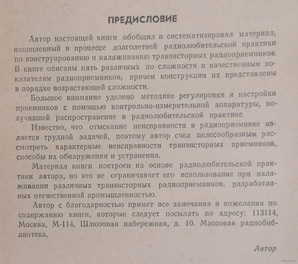 Автор с благодарностью примет все замечания и пожелания по содержанию книги, которые следует посылать по адресу: 113114, Москва, М-114, Шлюзовая набережная, д. 10. Массовая радиобиблиотека,