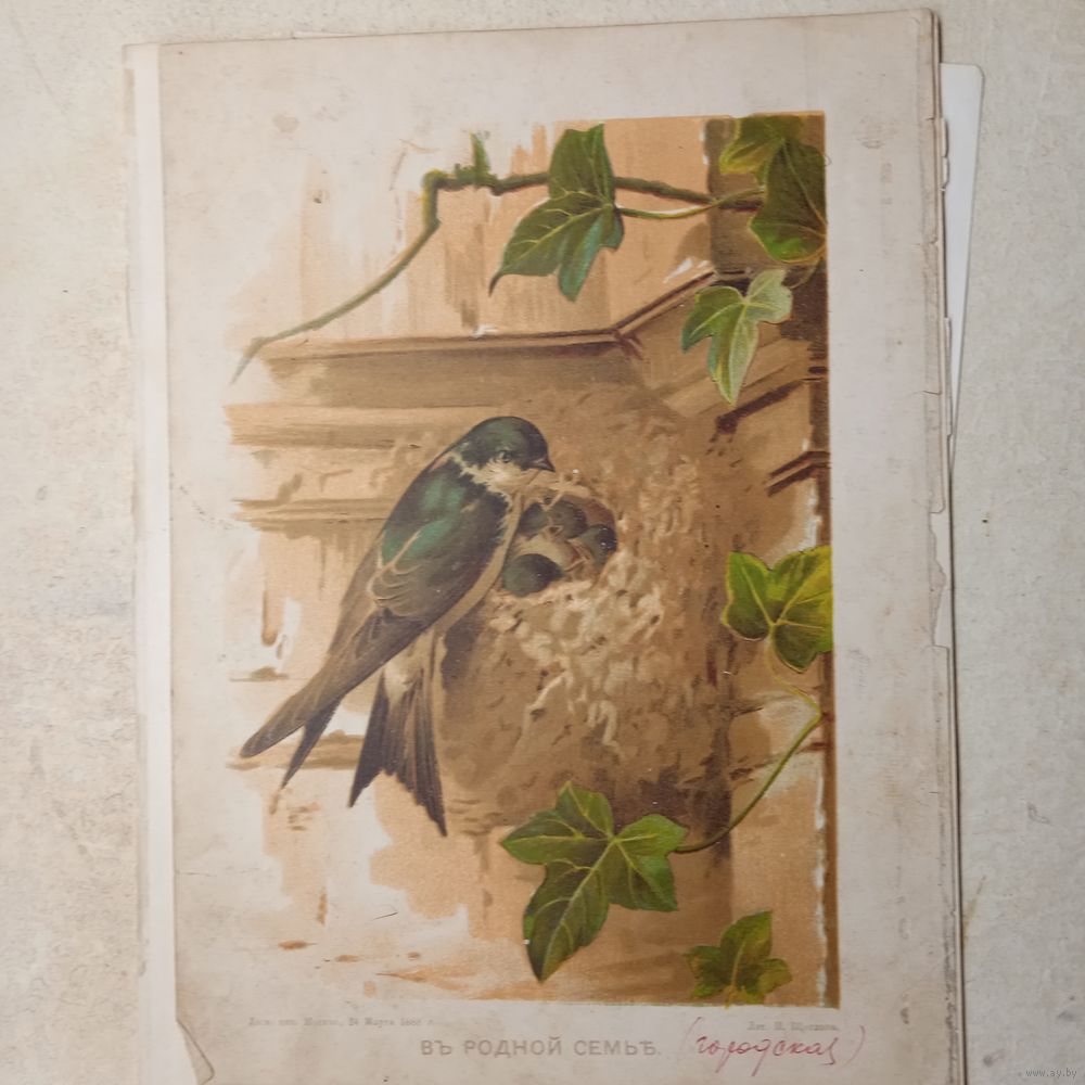 ВЪ РОДНОЙ СЕМЬЪ . 22х16см. хромогравюра 19 в. Спб. РАСПРОДАЖА КОЛЛЕКЦИИ.