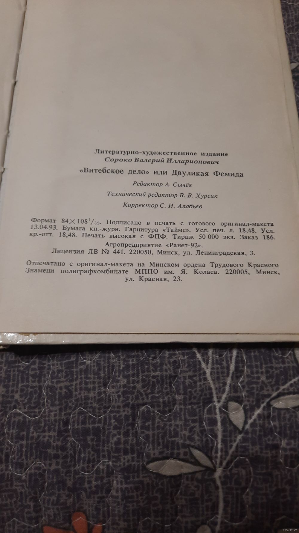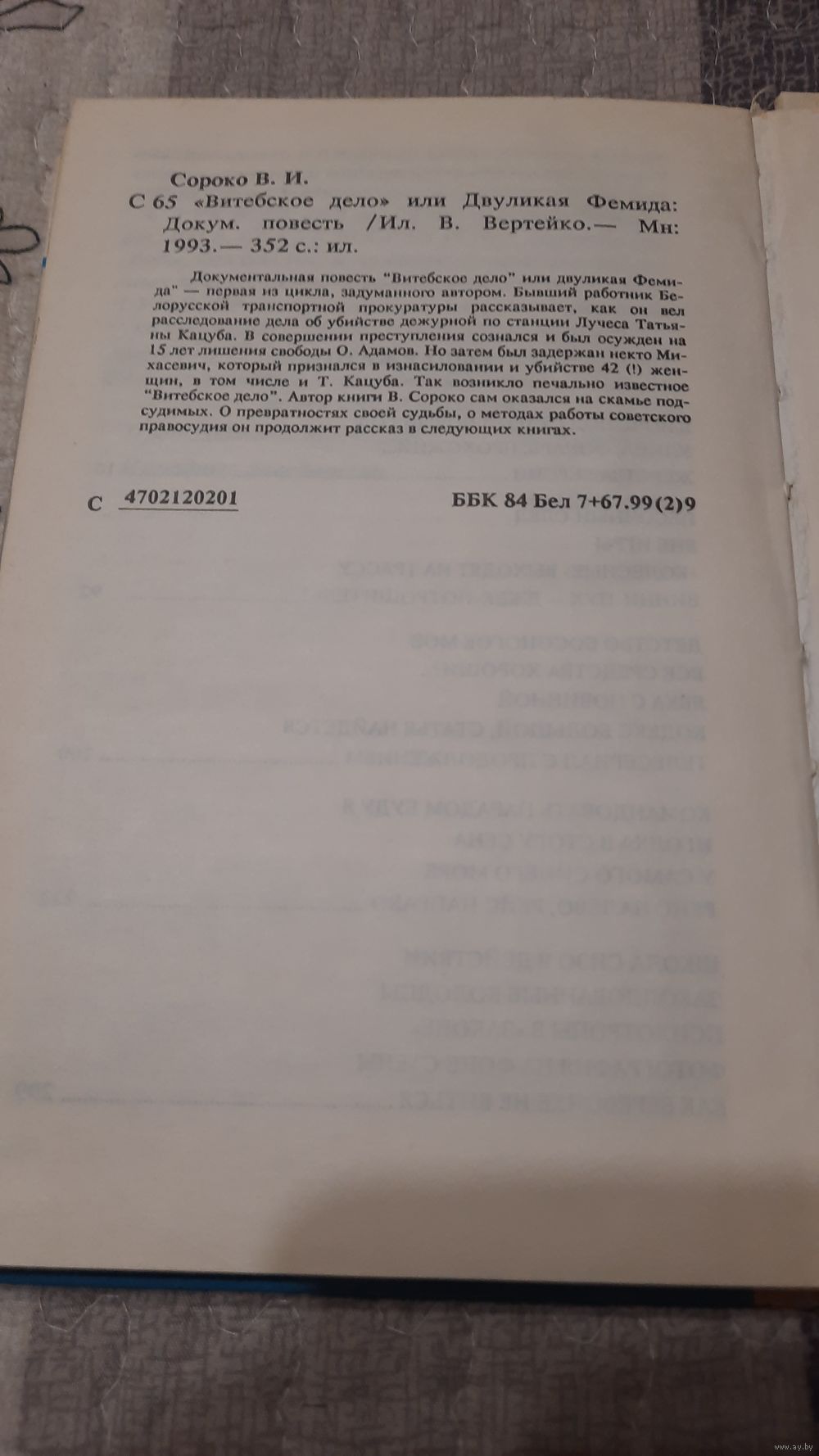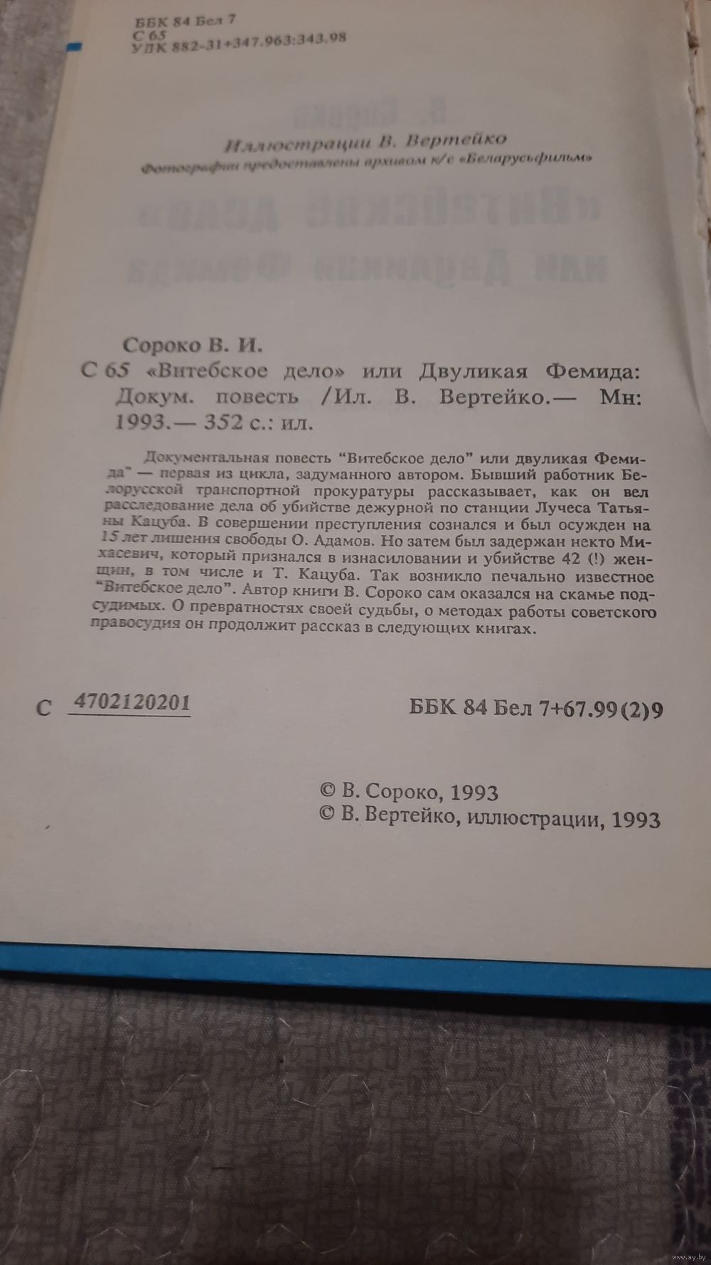 В.Сороко "Витебское дело" или Двуликая Фемида, Минск 1993г.