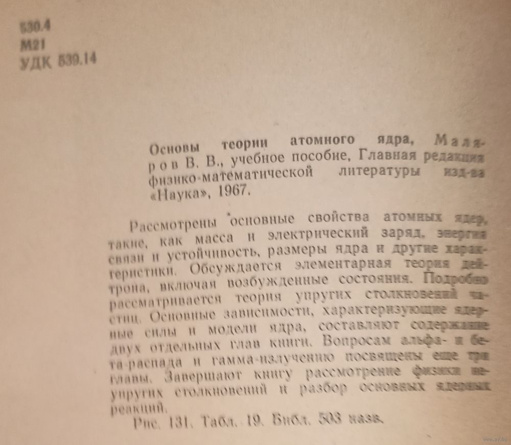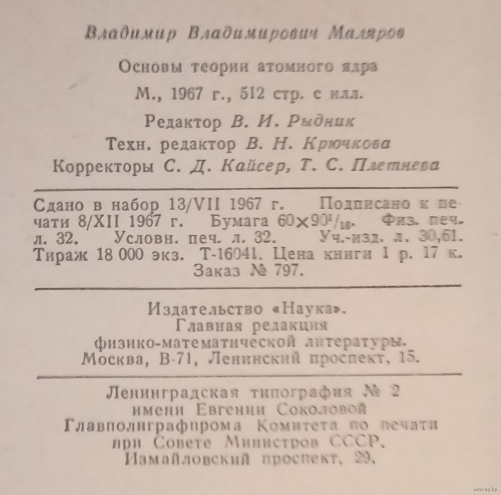 В. В. Маляров Основы теории ядерного ядра. Москва 1967 год