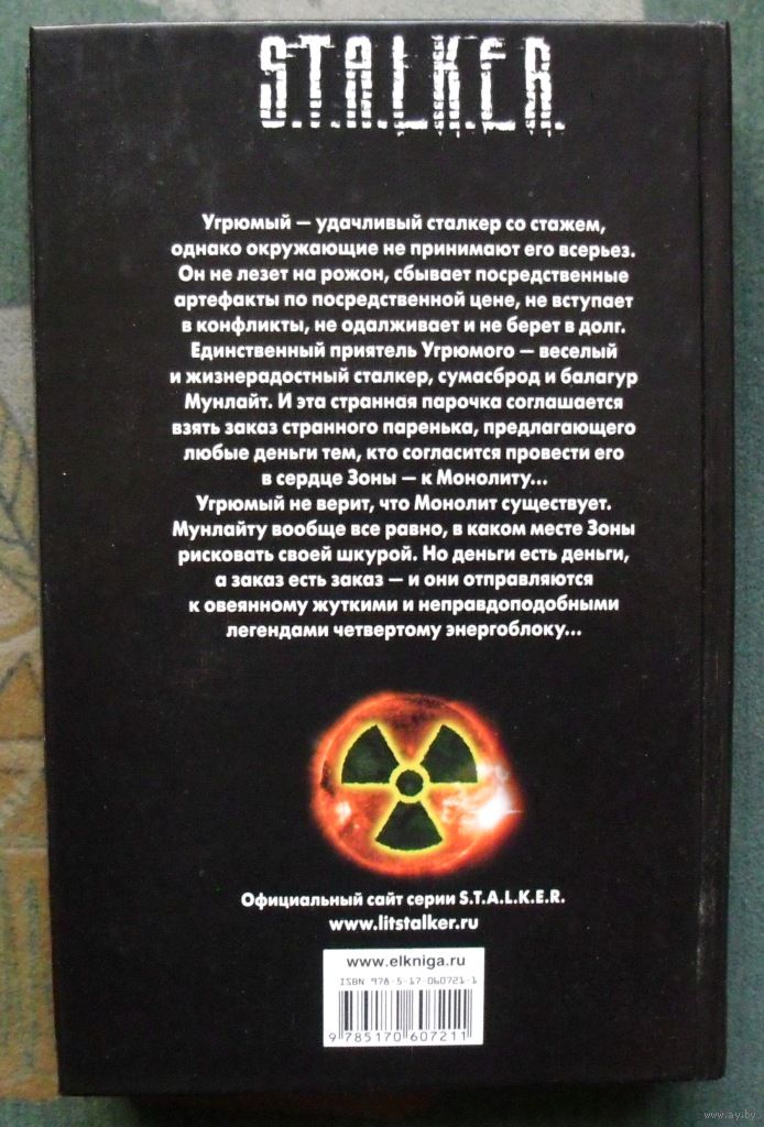 Угрюмый — удачливый сталкер со стажем, однако окружающие не принимают его всерьез. Он не лезет на рожон, сбывает посредственные артефакты по посредственной цене, не вступает в конфликты, не одалживает и не берет в долг. Единственный приятель Угрюмого — веселый и жизнерадостный сталкер, сумасброд и балагур Мунлайт. И эта странная парочка соглашается взять заказ странного паренька, предлагающего любые деньги тем, кто согласится провести его в сердце Зоны — к Монолиту… угрюмый не верит, что Монолит существует. Мунлайту вообще все равно, в каком месте Зоны рисковать своей шкурой. Но деньги есть деньги, а заказ есть заказ — и они отправляются к овеянному жуткими и неправдоподобными легендами четвертому энергоблоку…