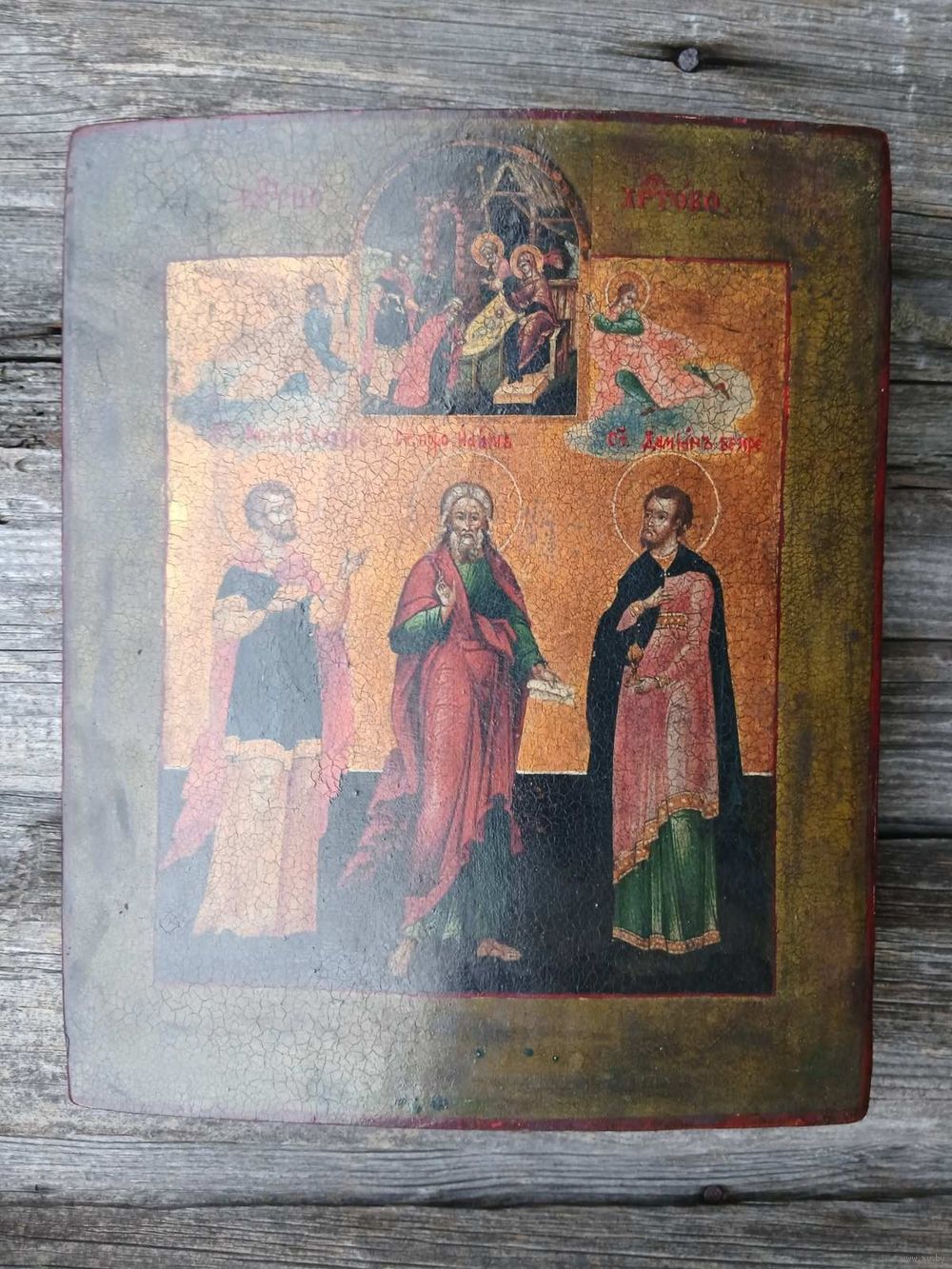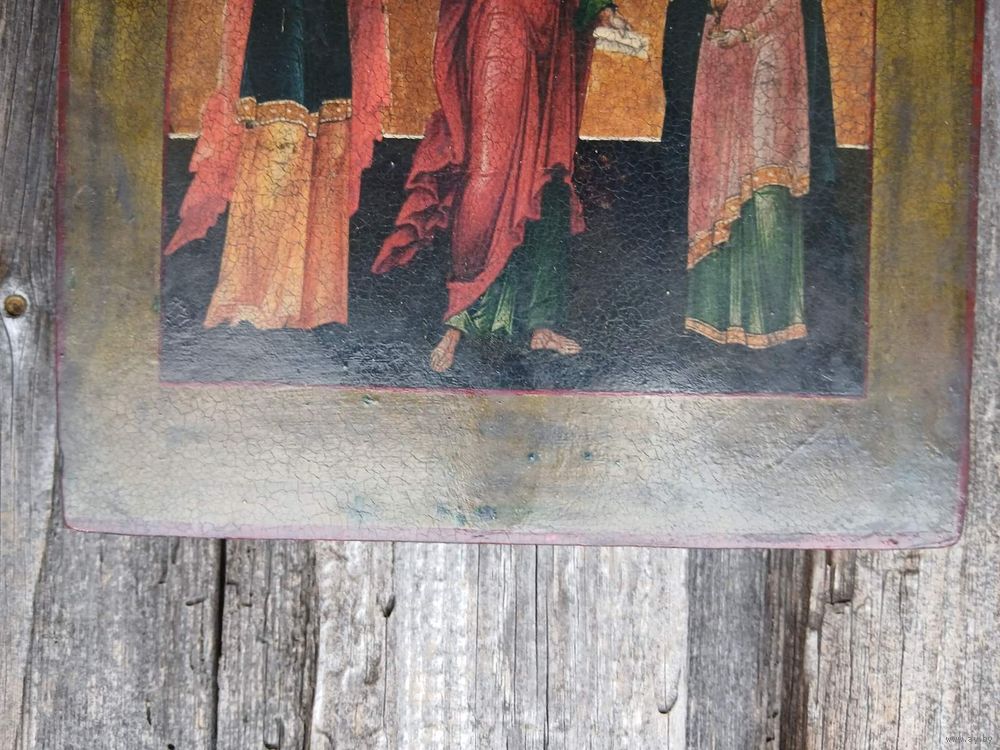 Продаю то, что на фотографиях.ОБРАЗ ЦЕЛИТЕЛЬНЫЙ.ОБРАЗ АНОЛОЙНЫЙ.ОБРАЗ ПРАЗДНИЧНЫЙ(РОЖДЕСТВО ХРИСТОВО. Три в одном. Полная предоплата. Выкуп проданного лота в течение 3 х трёх дней. Отправка Белпочтой. Чек отправки посылки покупателю сброшу на егоВаи́бер. Если нужны доп фота, сброшу звонящему на его Вайбер. Все вопросы по телефону он указан в моих контактных данных.Краткое описание лота: Краска масленичная или темперная??? Точно не скажу, к сожалению не специалист в этих вопросах. Точно краса не бумага. Трещинки не глубокие, краска держится крепко ничего не отлетает. Сверху покрыто вроде олифой? Имеет приятный запах, Толи Ладона,Толи цековны восковых свечей.