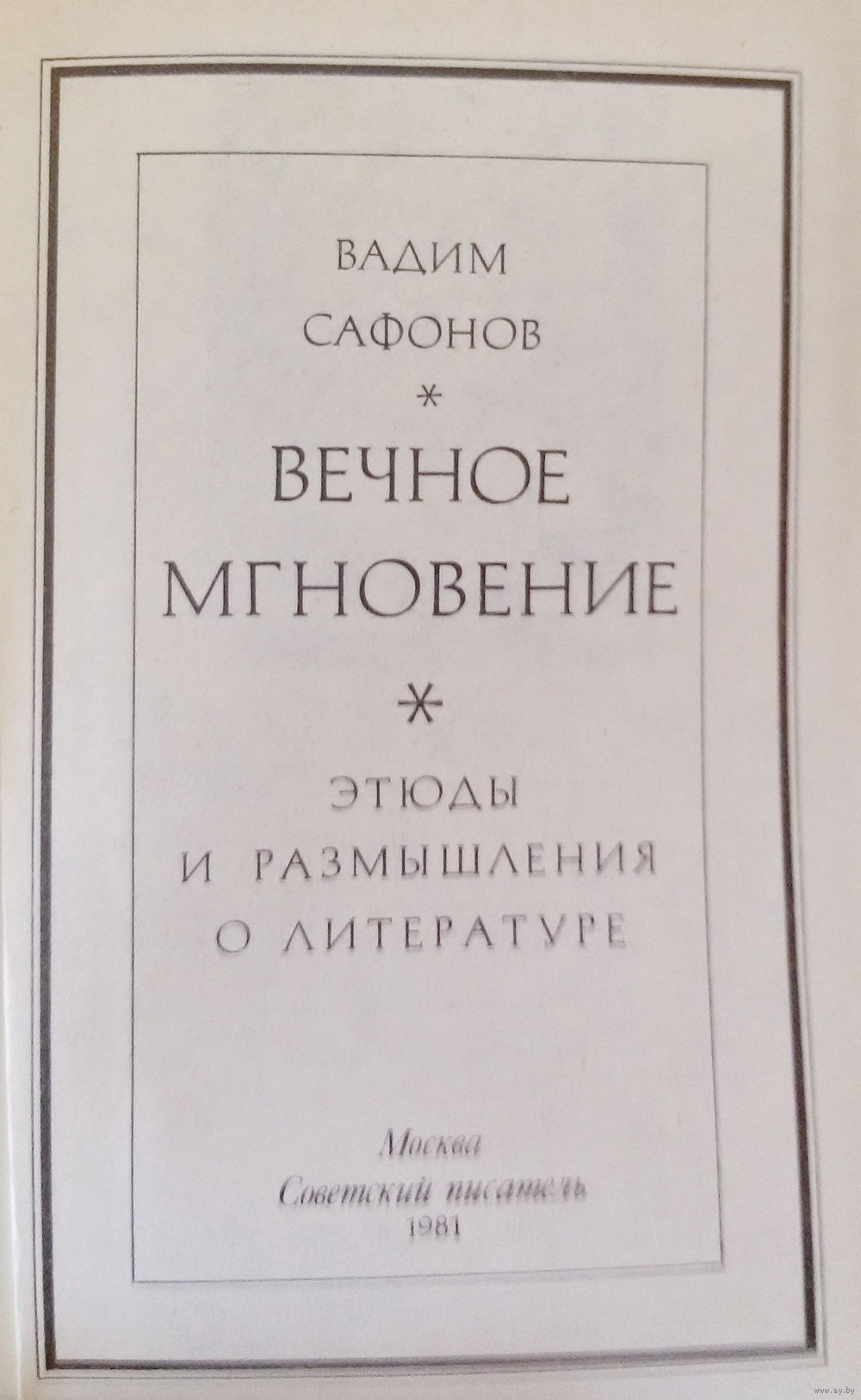 Вадим Сафонов-Вечное мгновение-этюды и размышления о литературе, Москва, Советский писатель, 1981г, 502с, тираж 20.000экз, твердый переплет.