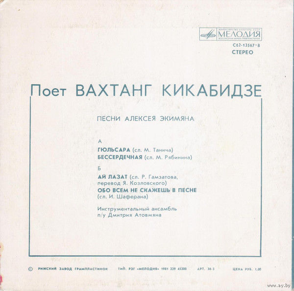 Вахтанг Кикабидзе – Песни Алексея Экимяна