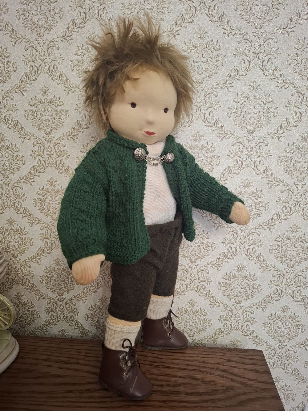 В одежде и кожаных ботиночках