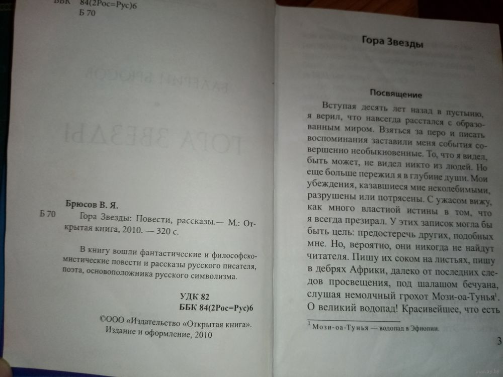 «Гора Звезды» – это фантастический роман Валерия Брюсова, написанный с 1895 по 1899 год. В нем рассказывается о герое, который обнаруживает в Центральной Африке умирающего европейца, поведавшего о тайне: посреди пустыни существует колония потомков марсиан. Роман был впервые опубликован в 1975 году в сборнике «Фантастика 73-74» и является самым крупным фантастическим произведением Брюсова.
