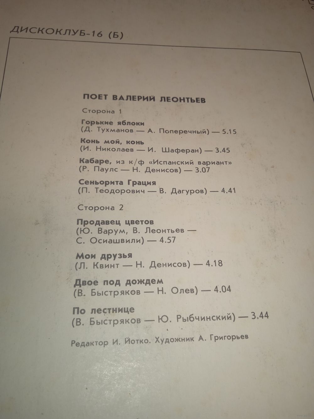 | Исполнитель | Валерий Леонтьев |