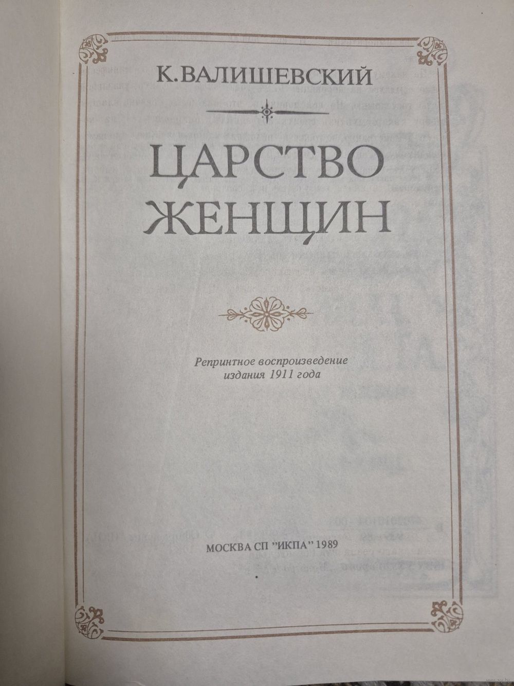 38. Валишевский Казимир Царство женщин Репринтное воспроизведение с издания 1911г Москва СП ИКПА 1989г. 448стр