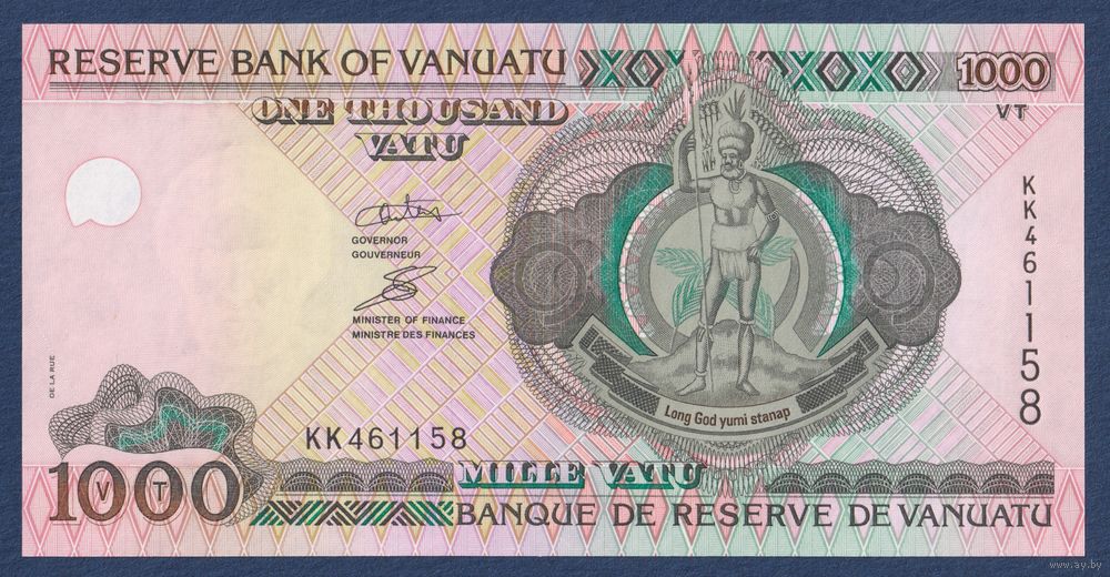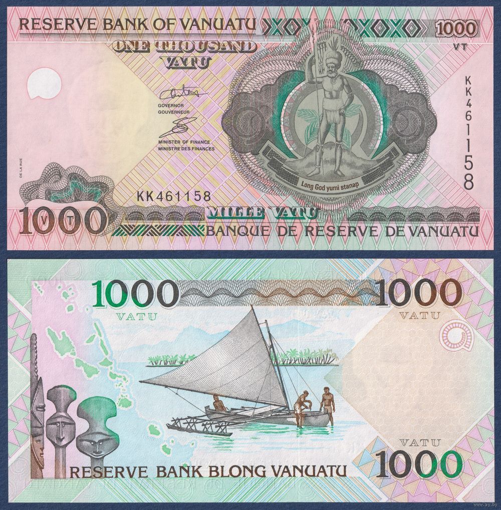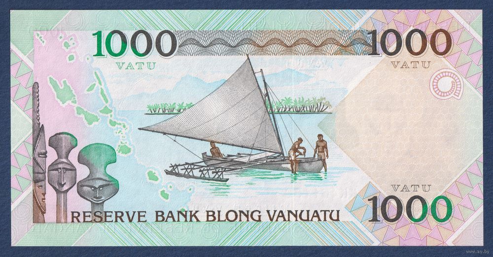 Вануату, 1000 вату 2002 г, P-10 (KK, меланезийский вождь, парусная лодка), UNC