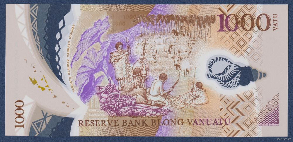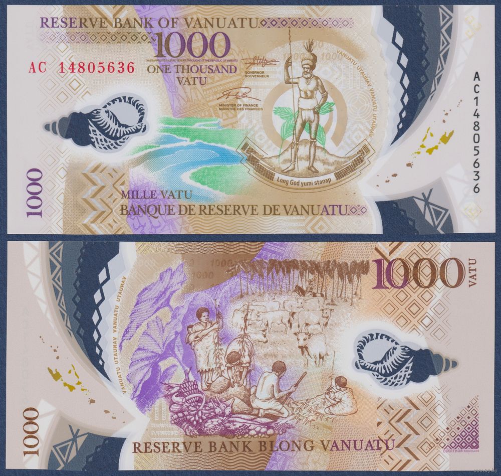 Вануату, 1000 вату 2014 г., P-13 2014(2) (AC, полимер, меланезийский вождь, фермеры), UNC