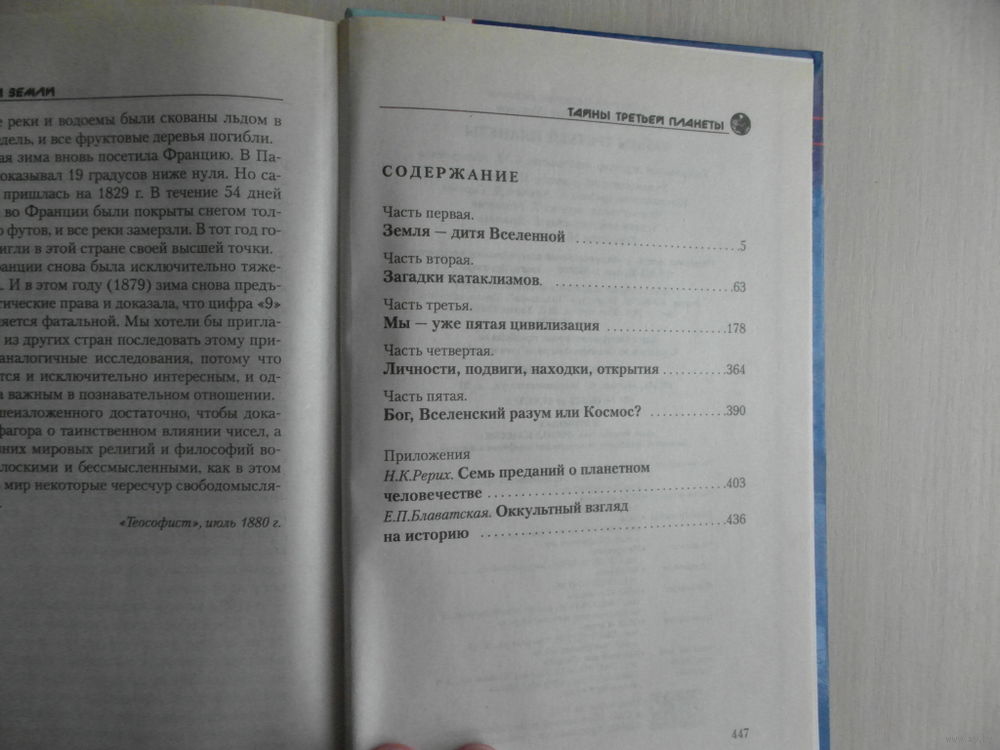 Авторы научно-популярной книги пытаются ответить на вопросы о том, что такое Земля: космическое тело или гигантский саморегулирующийся организм, что явилось причиной возникновения жизни на Земле, по каким неведомым законам сменяются на Земле геологические эпохи, эры благоденствия и катастрофы. Содержание: Содержание: Земля-дитя Вселенной.- Загадки катаклизмов.- Мы-уже пятая цивлизация.- Личности, подвиги, находки, открытия.- Бог, Вселенский разум или Комос? Приложения: Н.К.Рерих. Семь преданий о планетном человечестве.- Е.П.Блаватская. Оккультный взгляд на историю.