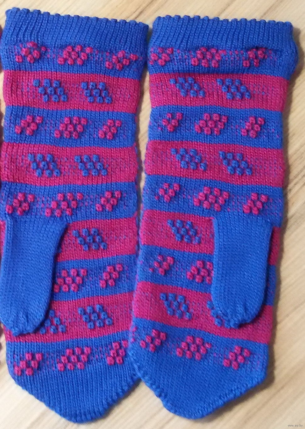 Варежки синие, новые, размер 19,длина ладошки-17см, ширина- 8см, длина пальца-7см.