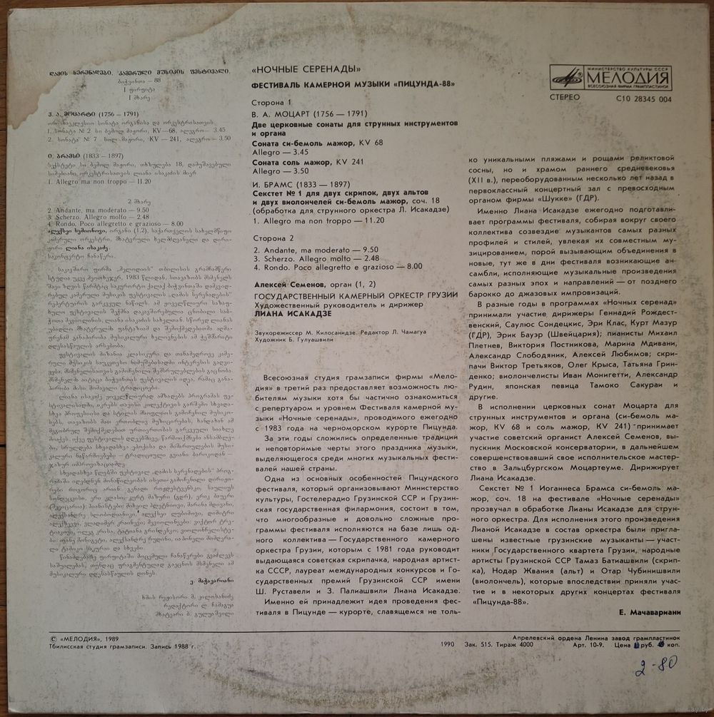 Various – "Ночные Серенады". Фестиваль Камерной Музыки "Пицунда-88" 1