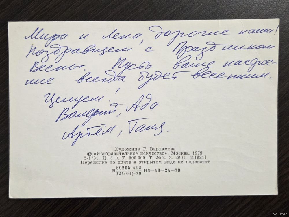 Варламова С праздником 1979 подписанная открытка СССР уменьшенный формат