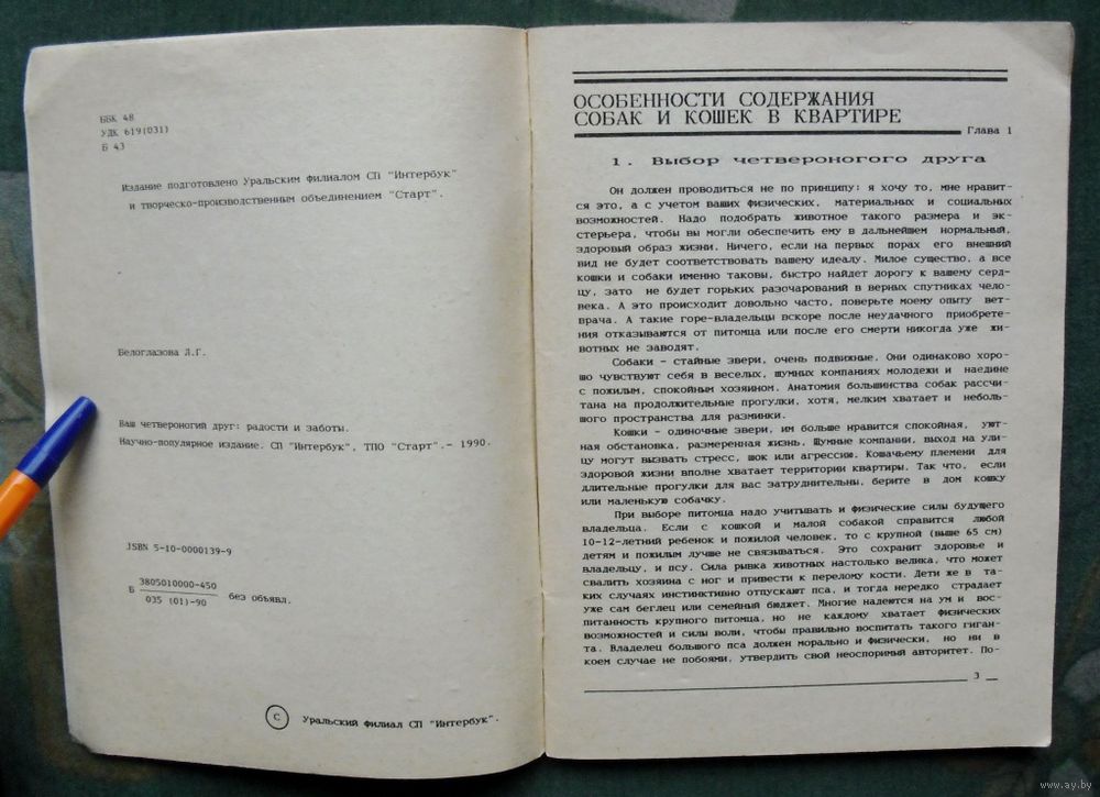 Книга Л.Г. Белоглазовой подготовлена и выпущена творческо-производственным объединением "Старт". Наше объединение, работая не только с известными, но и с ранее не печатавшимися - "молодыми" - авторами, позволяет им начать свой путь в "большой свет". В данном случае автор представляет Свердловское общество защиты животных, и наша книжка является реальным шагом общества к своим целям.