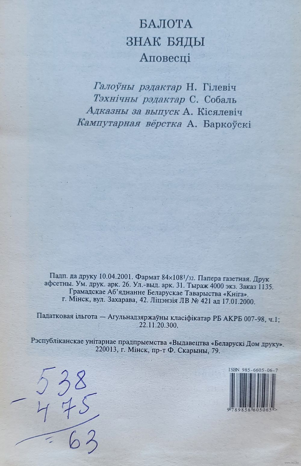 985-6605-06-7 9856605067 на апошняй старонцы пазнакі алоўкам. глядзі фота