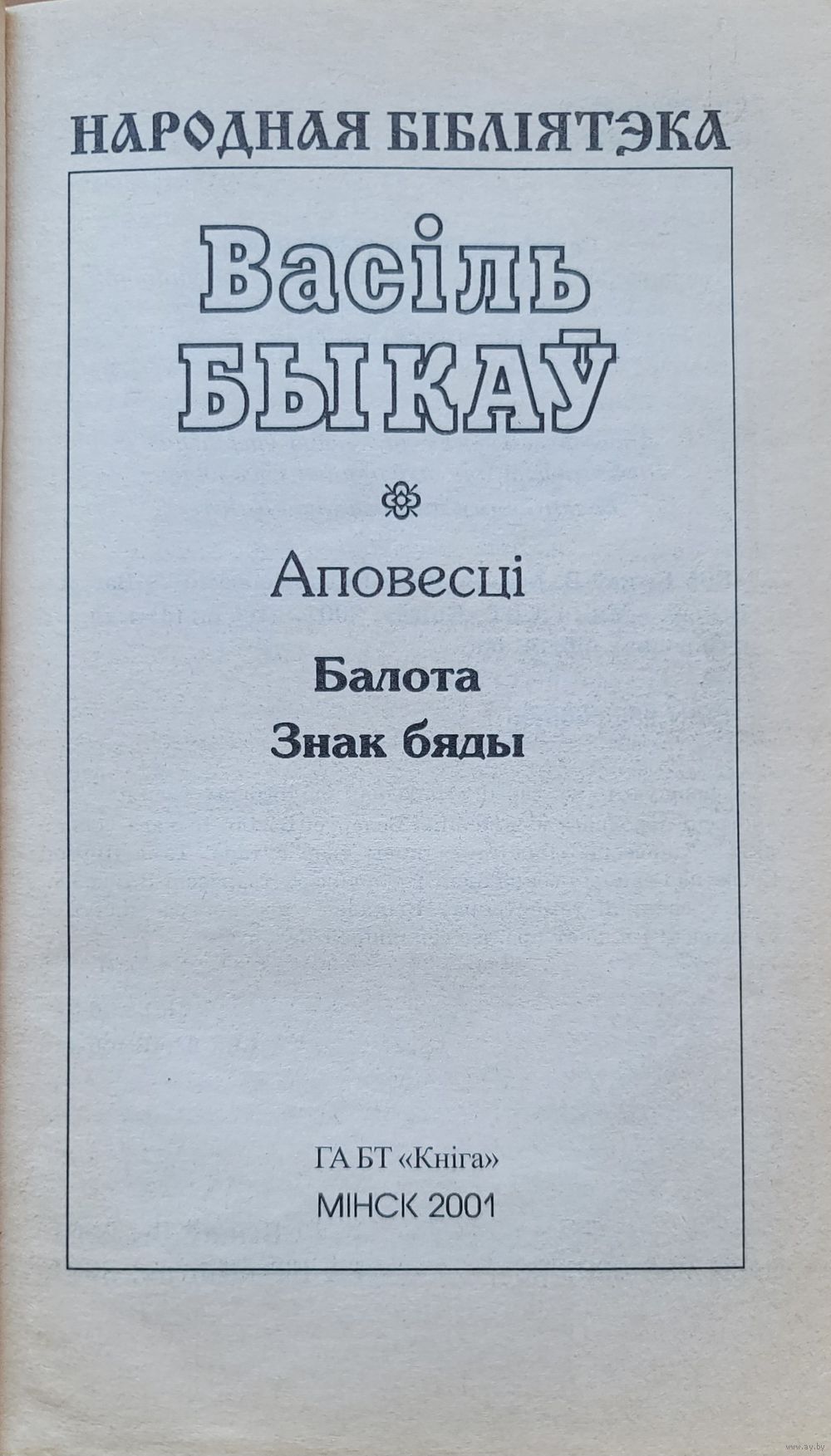 ВАСІЛЬ БЫКАЎ аповесці Балота Знак бяды серыя Народная Бібліятэка