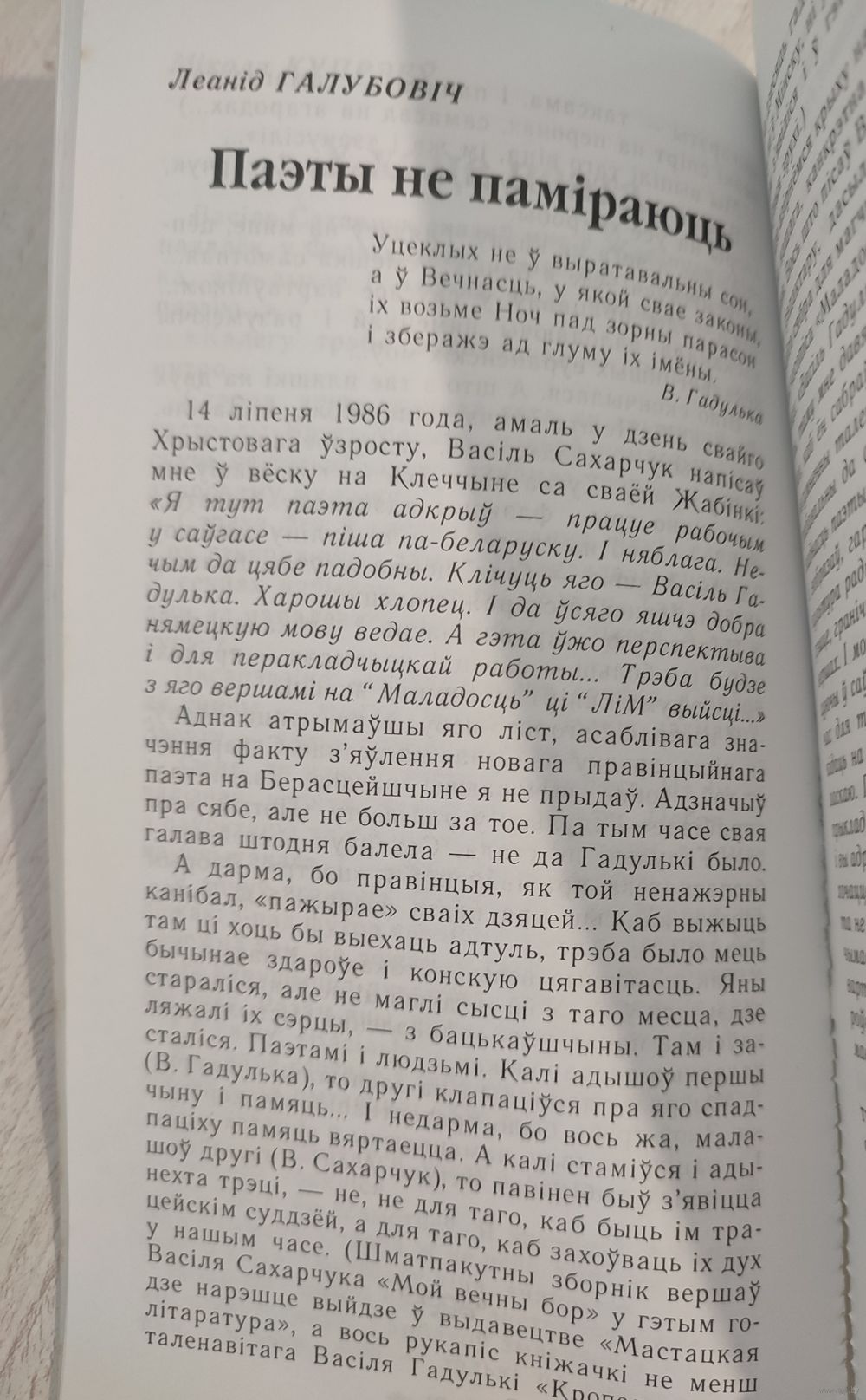 Гэтае арыгінальнае літаратурнае выданне – даніна памяці таленавітаму берасцейскаму паэту Васілю Гадульку (1946–1993). Першая частка кніжкі складзеная з успамінаў сяброў, знаёмых і калег па пяру. Другая – выбранае з паэтычнай спадчыны Васіля Гадулькі.