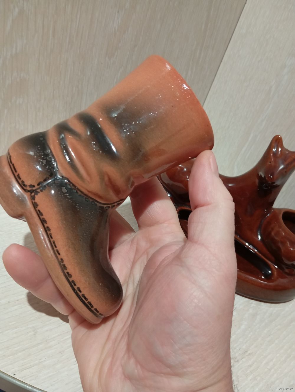Пепельница -Карандашница Маелика СССР цена 50 руб ,сапожок керамический ГДР 25 рублей
