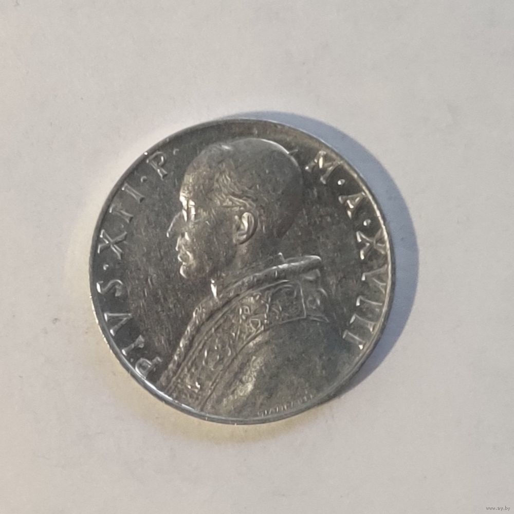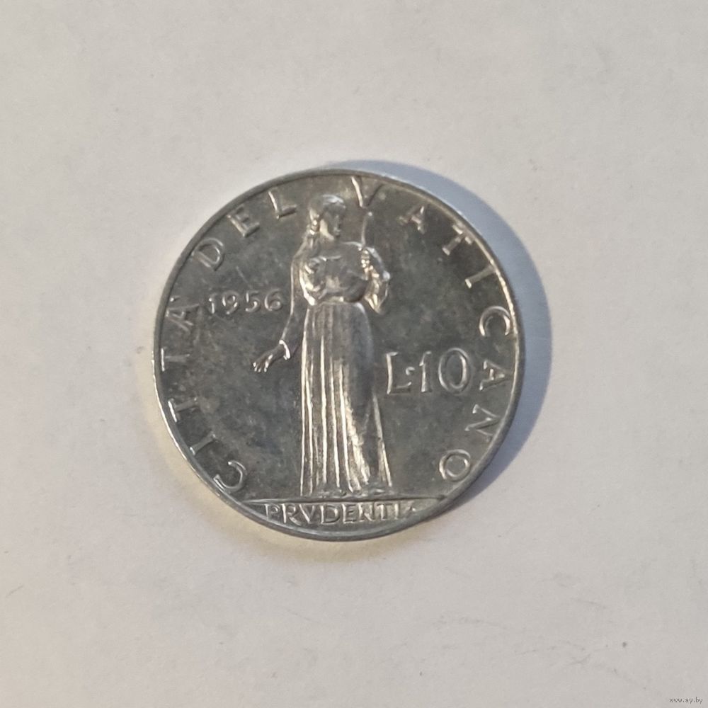 Номер KM# 52 Страна Ватикан Период Папа Пий XII (1939 - 1958) Правитель Пий XII Валюта Ватиканская лира Вид чекана Регулярный чекан Номинал 10 лир Год1951 - 1958 Материал Алюминий Гурт Гладкий Форма Круг Отношение авс/рев Монетное (180°) Вес (g) 1,6 Диаметр (mm) 23,33 Толщина (m m) 2