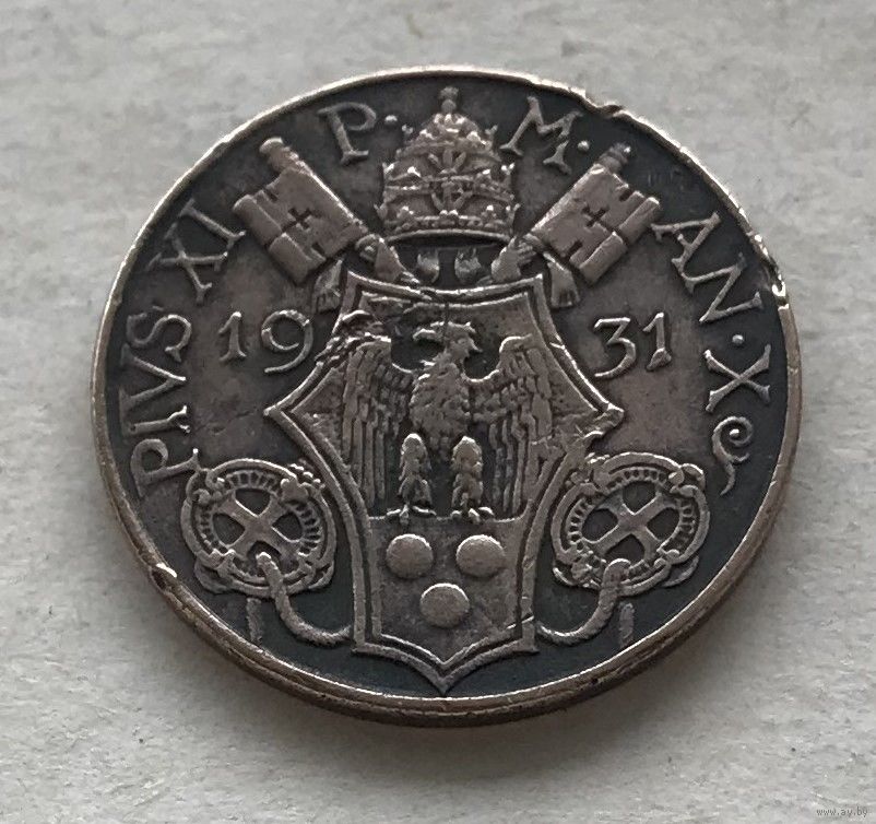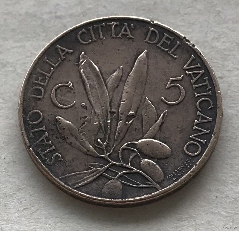 Ватикан 5 чентезимо 1931 Папа Пий XI бронза - самый мелкий номинал, нечастая!