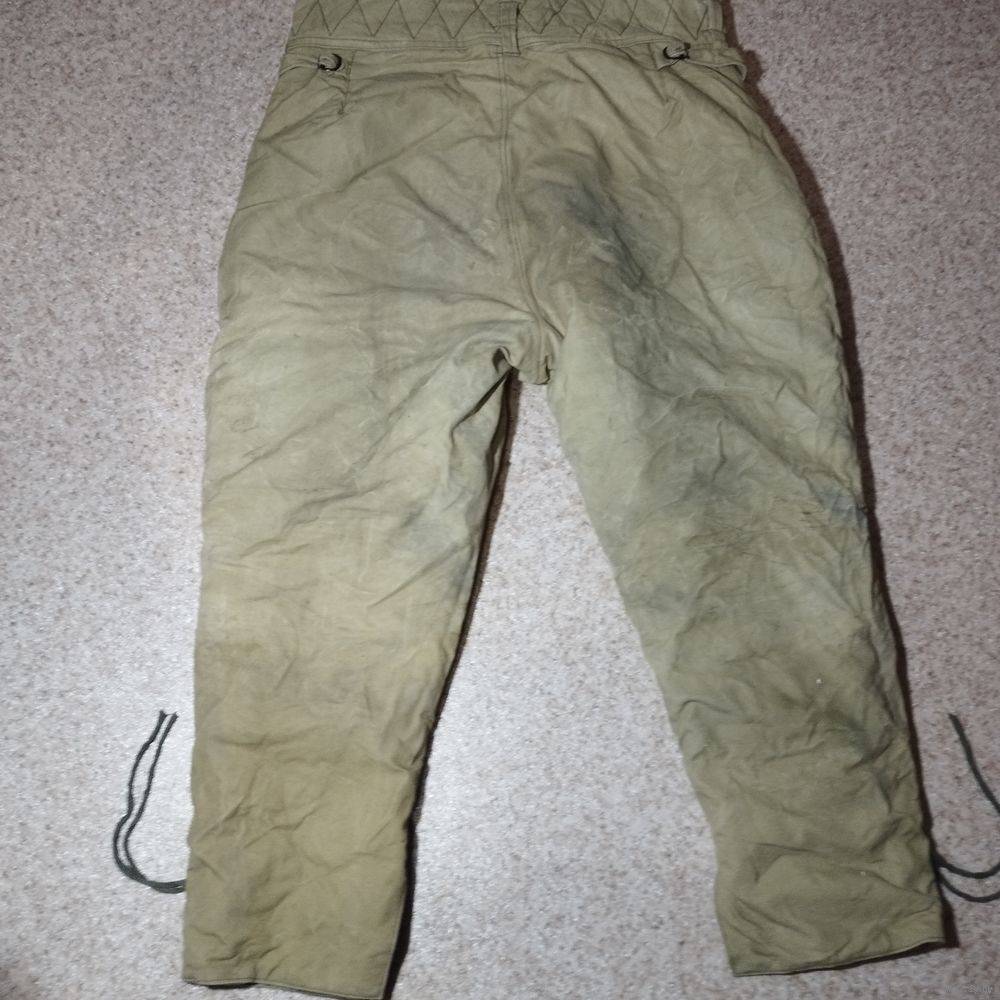 ватники ссср, длина 114, из них талия 14, длина до начала шага от пояса 50, длина шага 66, ширина талии 100-102, ширина бедер 126. Предпродажная подготовка - выстираны при высокой температуре, отпарены. Я не смогла справиться со старыми пятнами , они остались. Нет нигде порванного или зашитого. Пригодятся для зимней рыбалки, не промерзнете) Есть штамп БССР, рост 4, на фото.