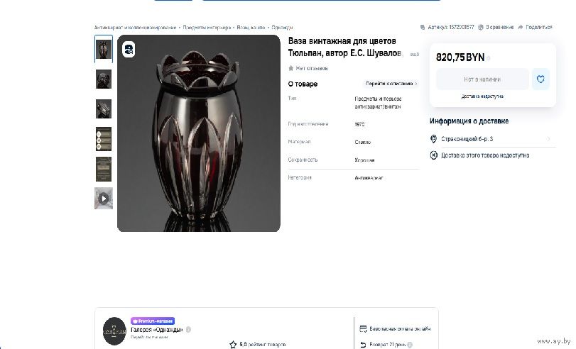Ваза, ещё в 1960-е, когда была новой, раскололась надвое. Склеивать не стали, чтобы не испортить. Так и стояла в стенке у стеночки. Поэтому продам всего за 205 рублей, с учётом того, что целая стоит 800 рублей. Есть опыт пересылки хрупких предметов.