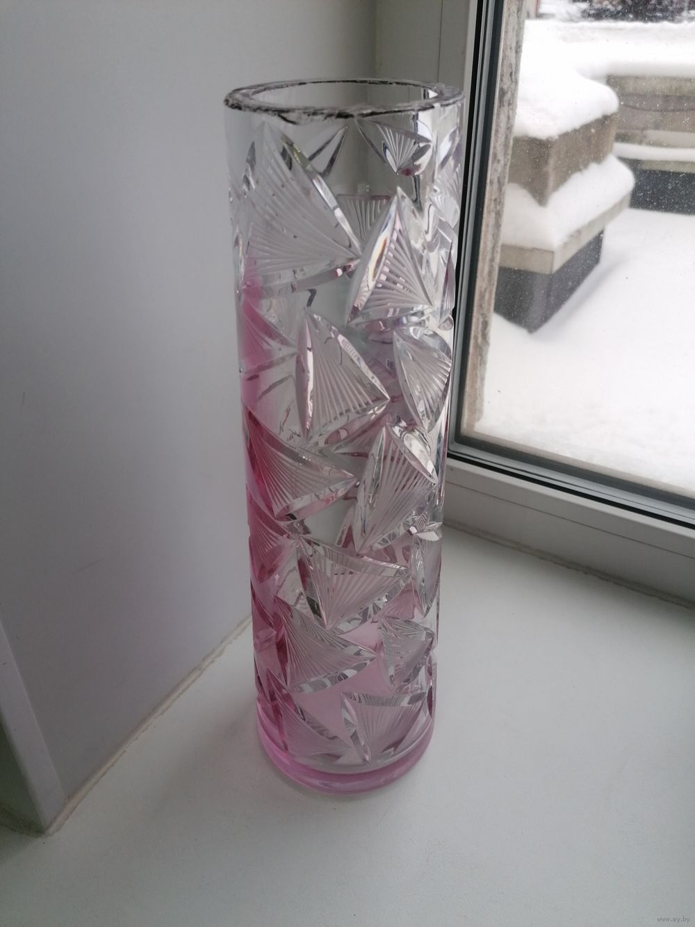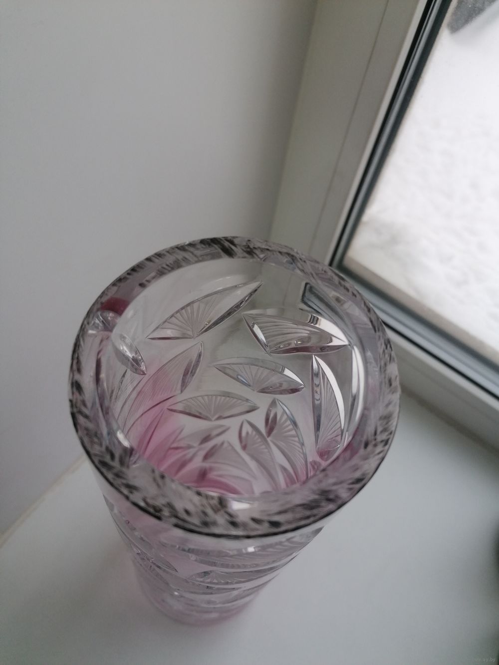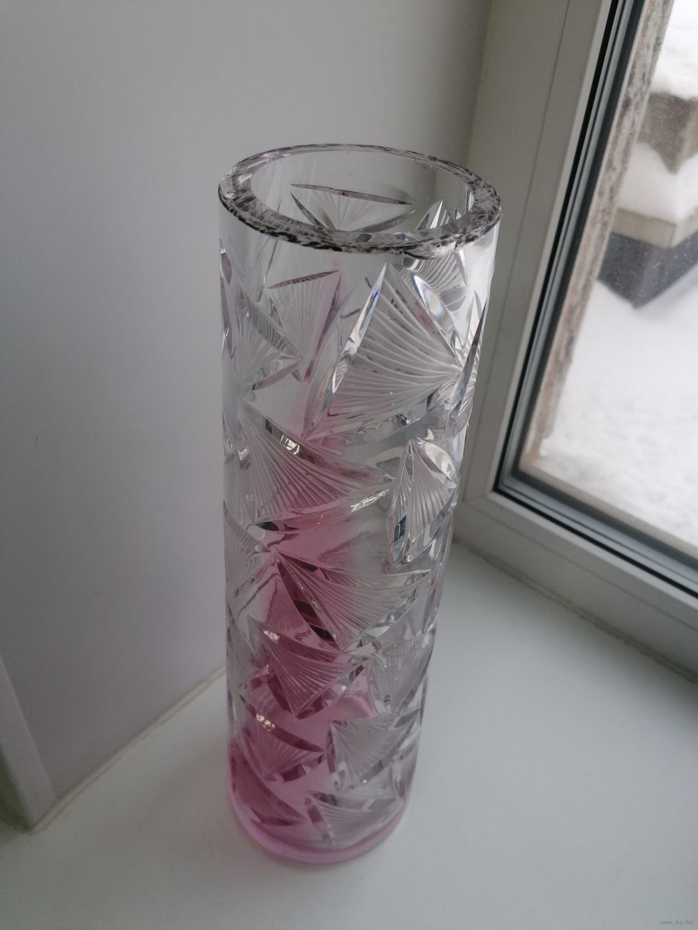 Без трещин. Кант вазы пытались чем-то шлифовать,чтобы убрать сколы. Нужно доработать.