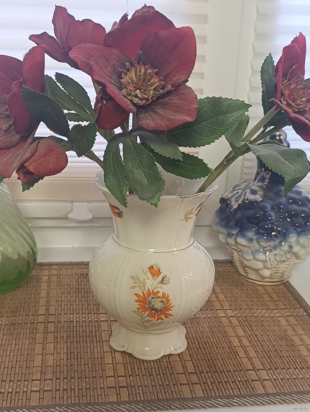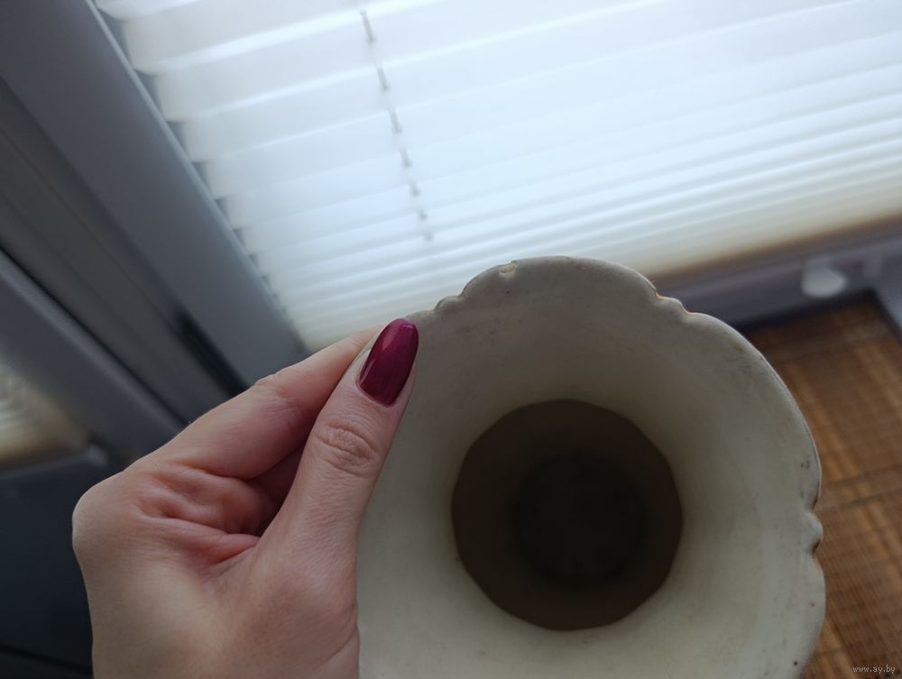 | Есть небольшой скол на горлышке, на фото видно.Высота вазы 18, 5 см. | |
