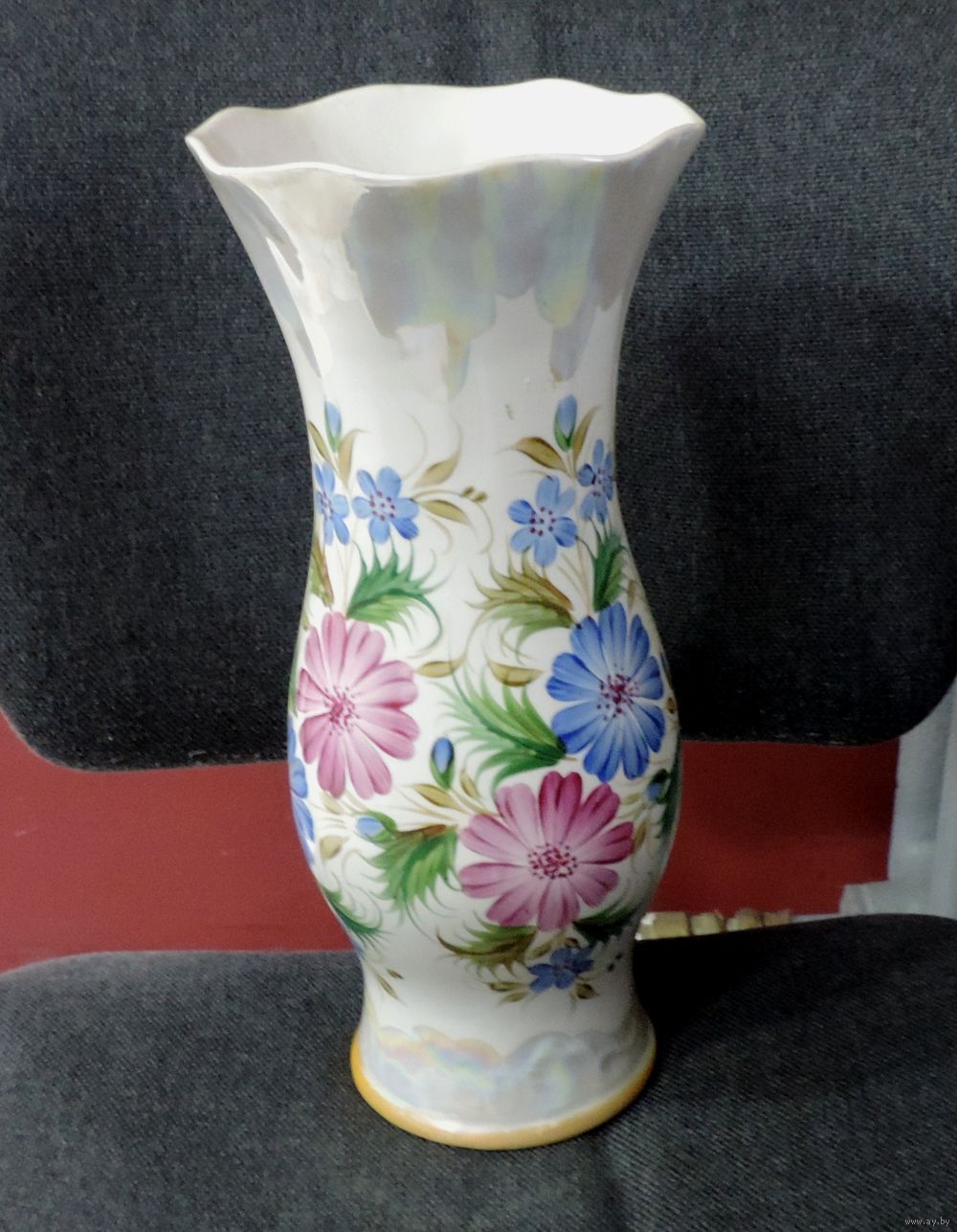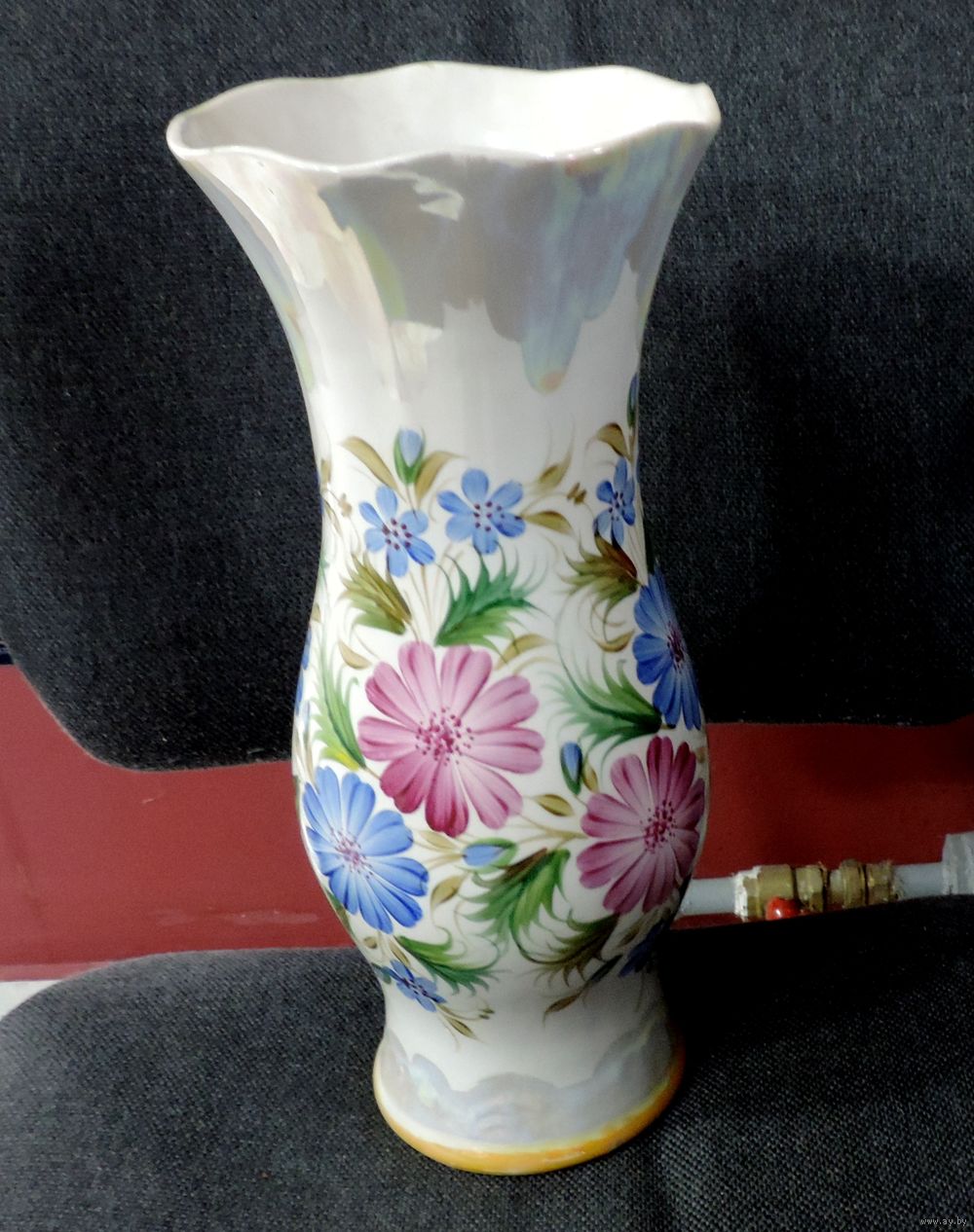 Ваза фарфоровая "Цветы" СССР. Высота 32 см.