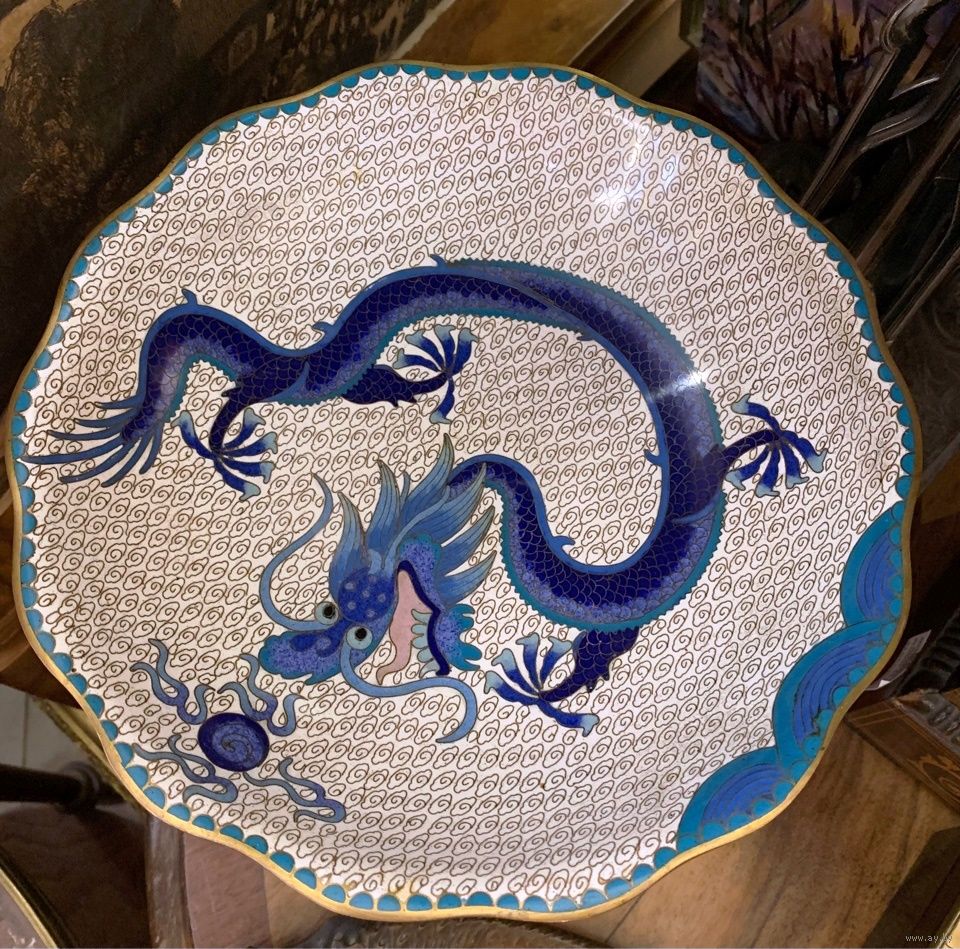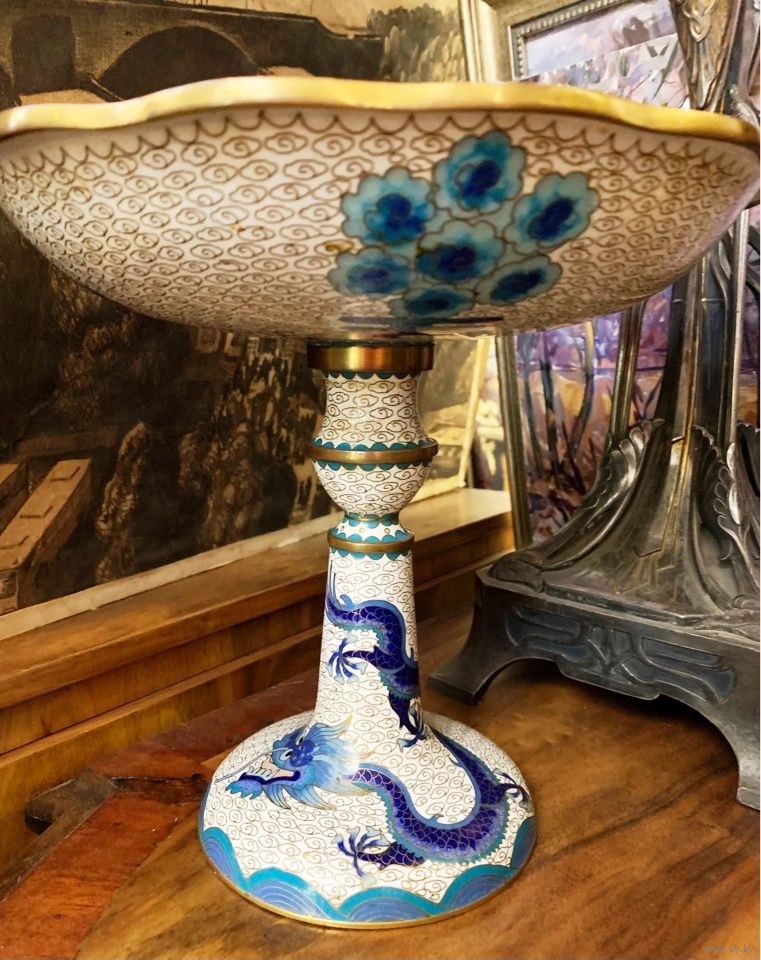 Фруктовница, ваза. Клуазоне, перегородчатая эмаль. Китай, 20 век. Состояние хорошее.
