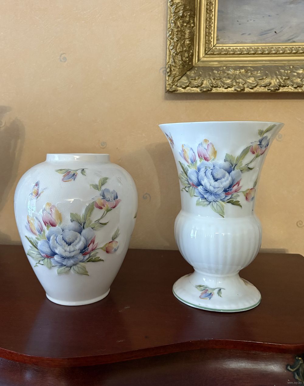Очень красивые вазы , высота 17 см и 20 см пузатая, объемная ,смотрится больше, есть кракелюр на меньшей , костяной фарфор, Цветы рельефные на вазе, смотрятся супер, есть ещё вазы этой серии