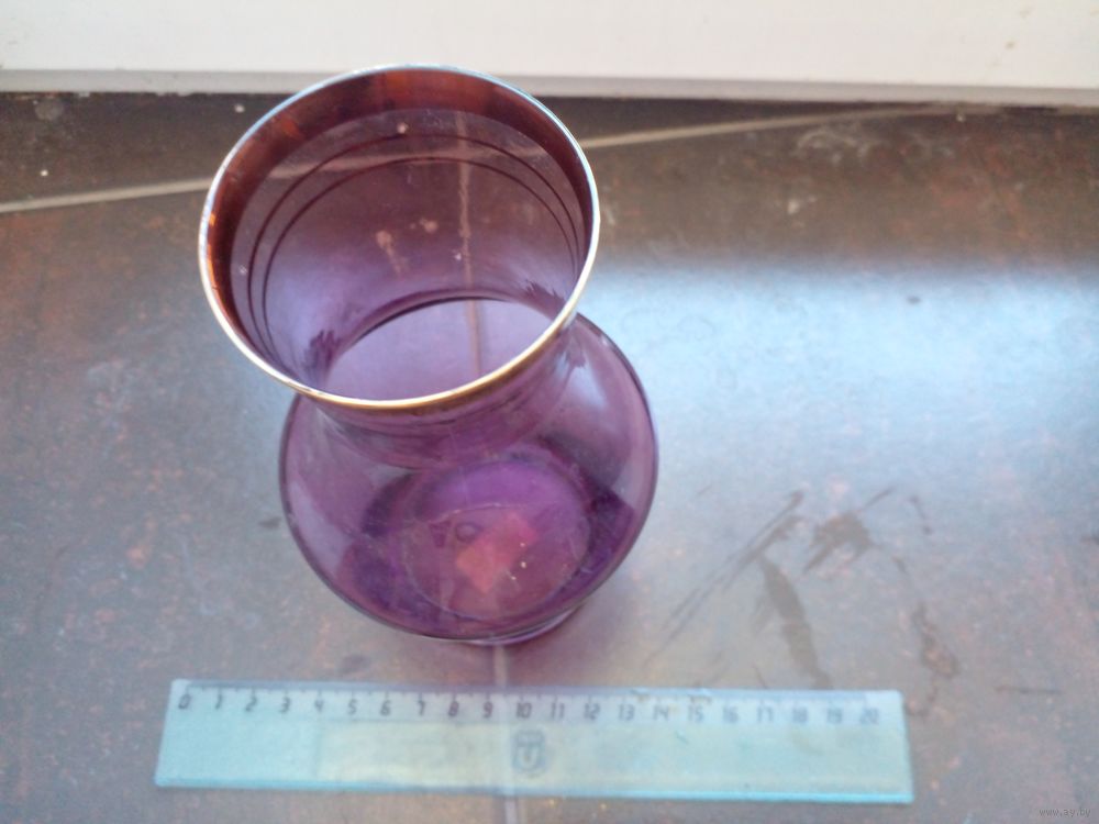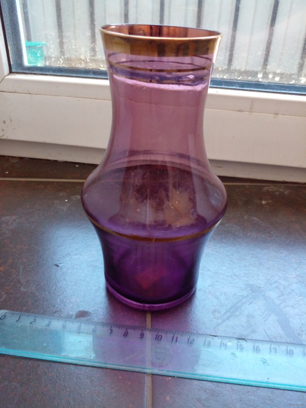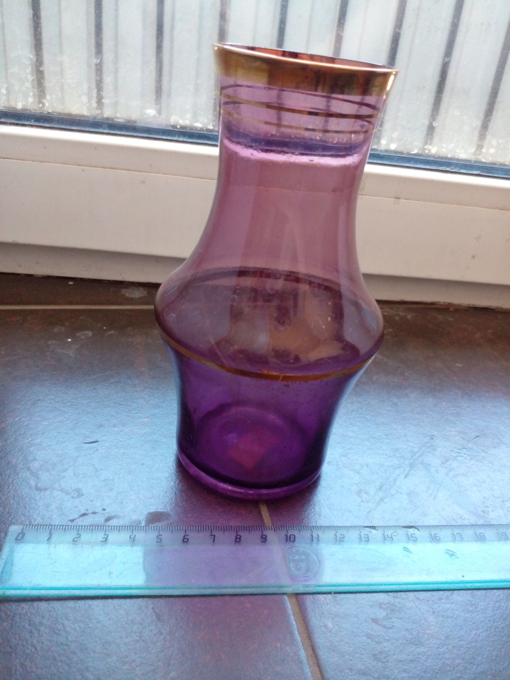 Ваза из аметистового стекла с золотистой отделкой 16 см